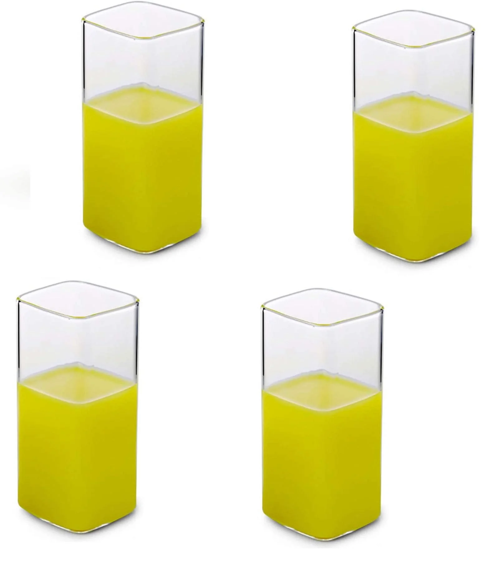 Set de 4 vasos cuadrados de vidrio de alta calidad. Diseño ergonómico, estilo minimalista. Ahorro de espacio en la barra. Apta para lavavajillas. Capacidad de 420 ml. Perfecto para bar o restaurante, cocteles o refrescos. Elegante añadido a cualquier colección. Ideal regalo para amantes de la coctelería.