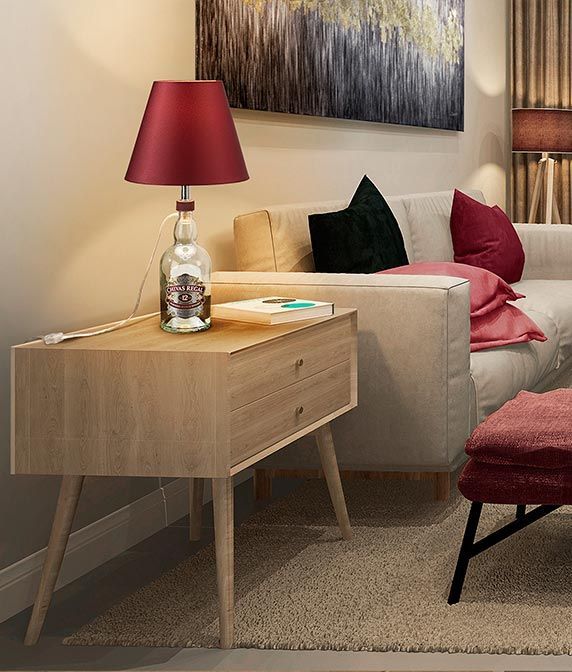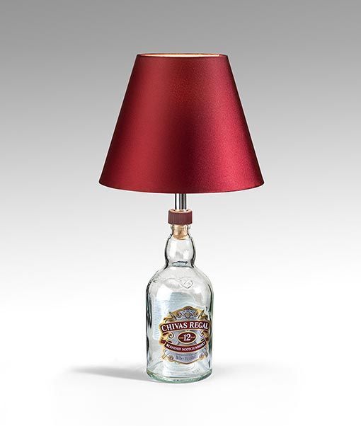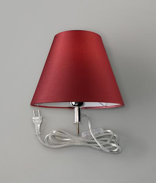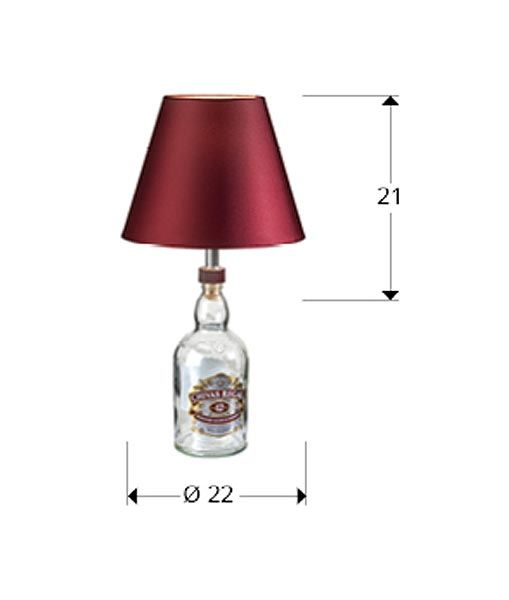 Kit sobremesa de iluminación para convertir botellas en lámparas (botella no incluida). Acabado en color cromo y rojo granate. Fabricado en metal y tejido. Voltaje 220-240V y fuente de luz cálida LED de 7W 3000K 560Lm (incl.).