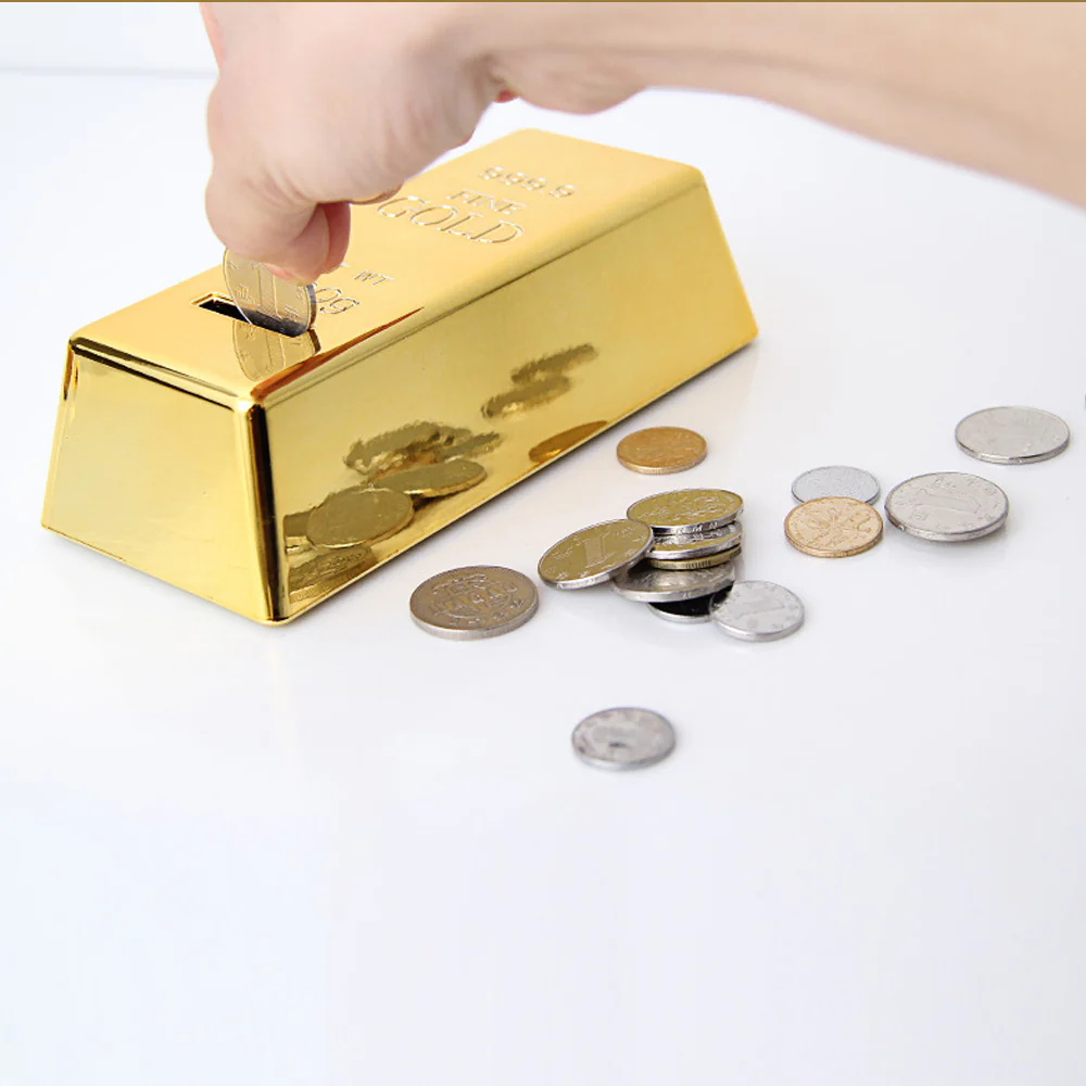 Alcancía En Forma de Lingote Barra De Oro hecha en Plástico Regalos para Niños Adorno para el Hogar