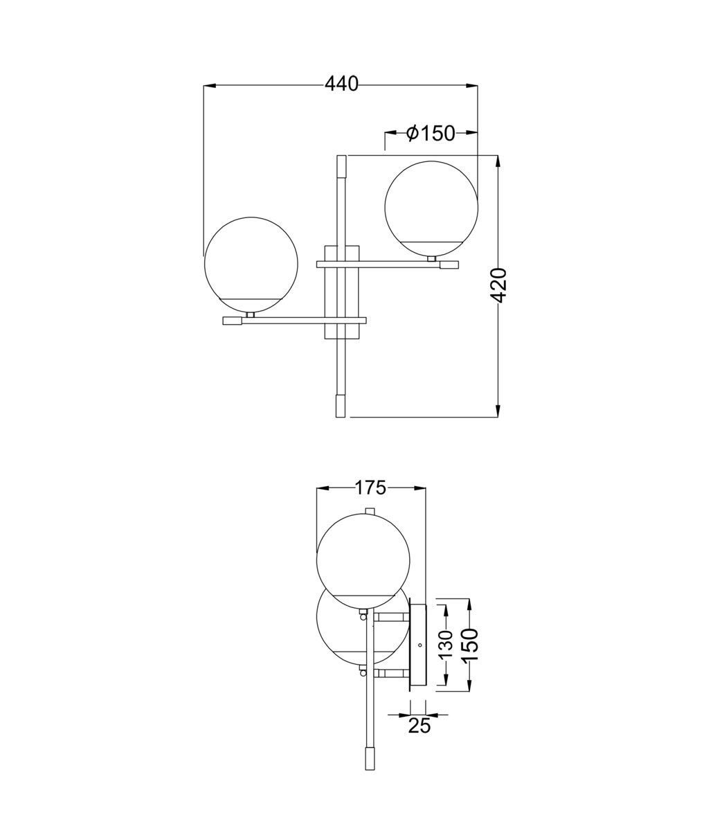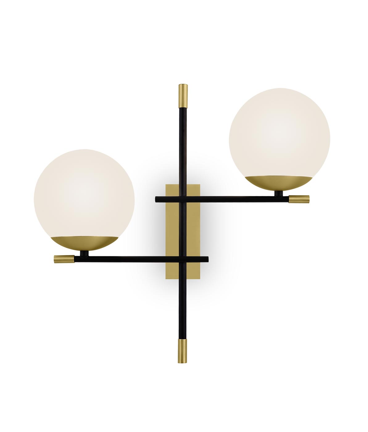 Aplique de pared de diseño modelo Nostalgia. Acabado en color dorado y negro. Fabricado en metal y cristal. Voltaje 220-240V y fuente de luz por 2 bombillas E14 MÁX 40W (no incluidas).
