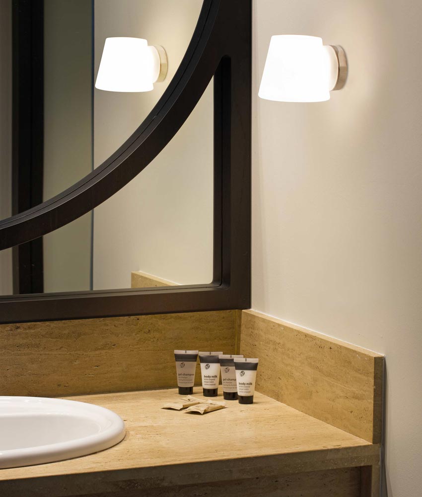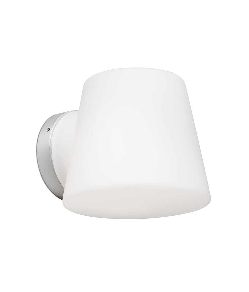 Lámpara aplique para el baño, modelo BIANCA. Acabado en blanco y cromo. Alta protección IP44. Fabricada en aluminio y difusor de cristal. Voltaje 100-240V y fuente de luz por bombilla G9 MAX 6W LED (no incl.).
