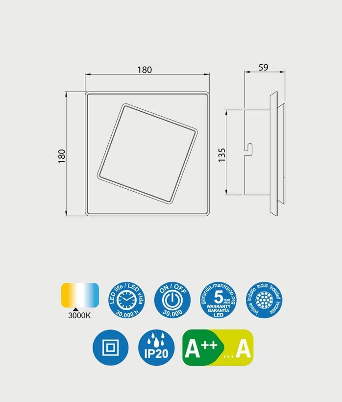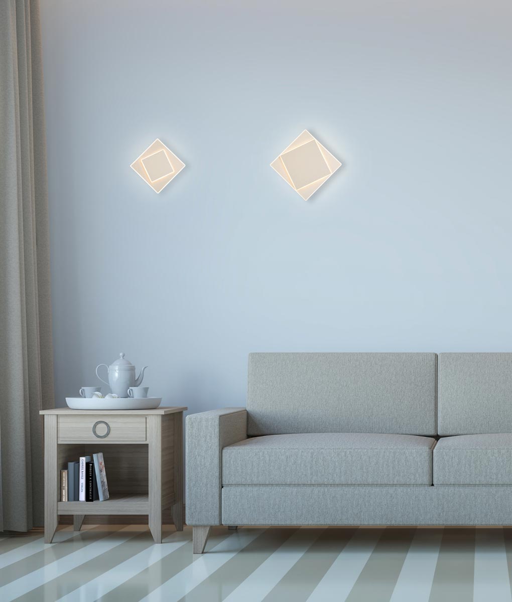 Lámpara aplique de pared estilo moderno y minimalista, modelo DAKLA LED. Acabado en blanco. Fabricada en metal. Voltaje 220-240V y fuente de luz cálida LED de 12W 3000K 725Lm (incluida).
