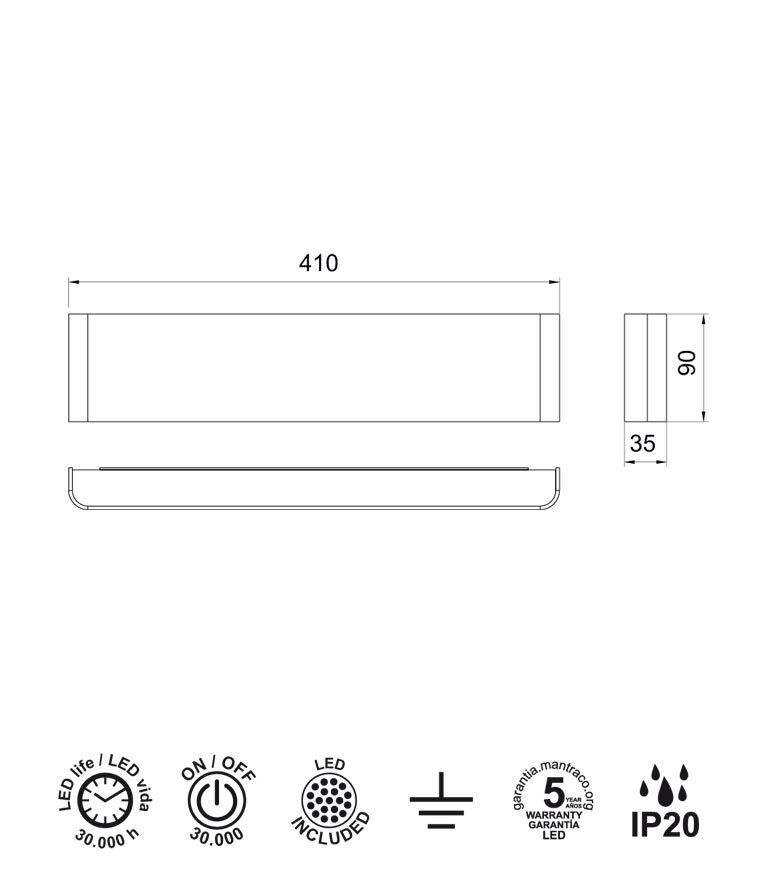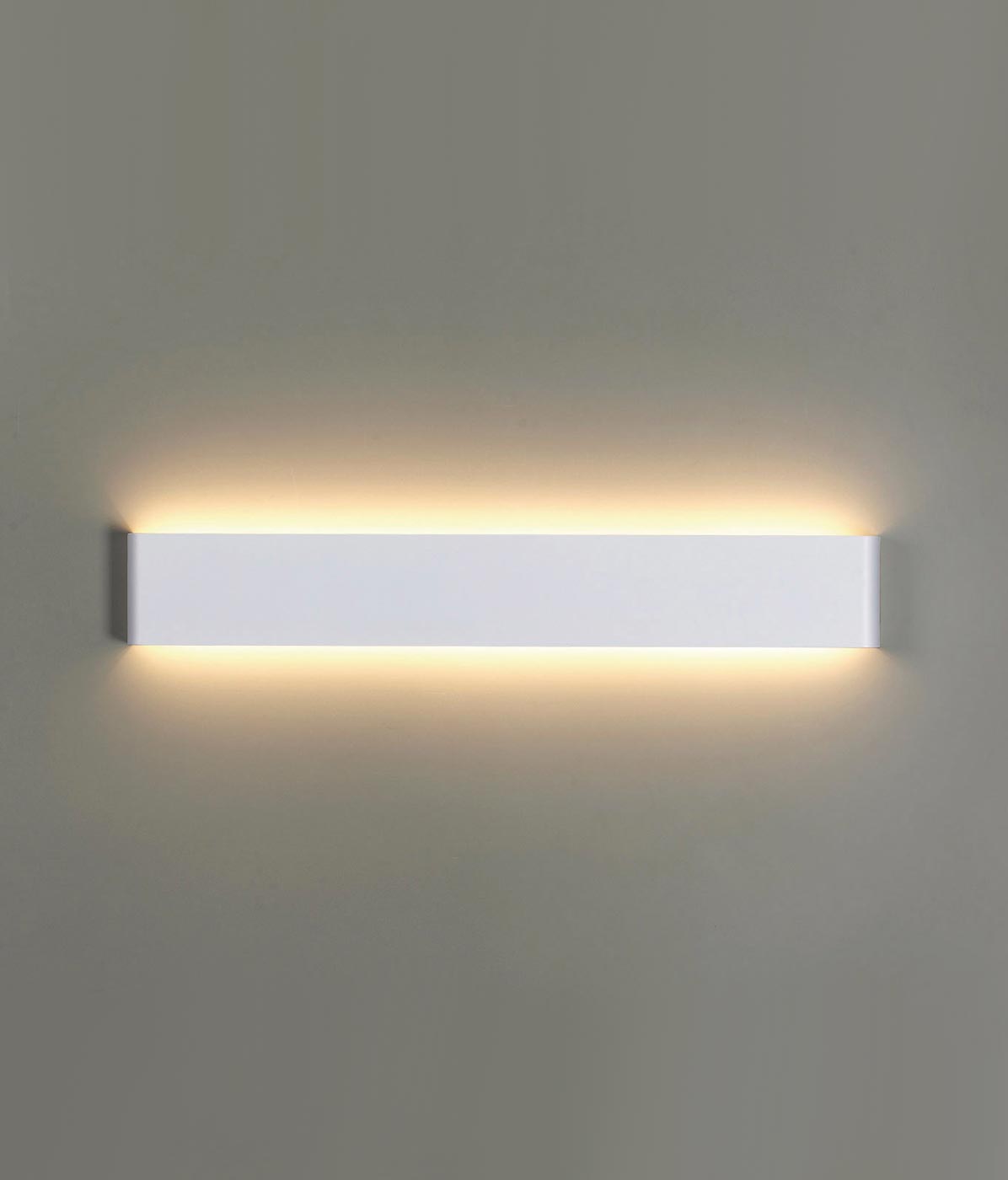 Lámpara aplique minimalista modelo Egeo LED. Acabado en color blanco. Fabricada en aluminio. Voltaje 220-240V y fuente de luz LED 14W luz cálida 3000K 1150Lm (incluida). 30.000 horas de uso.