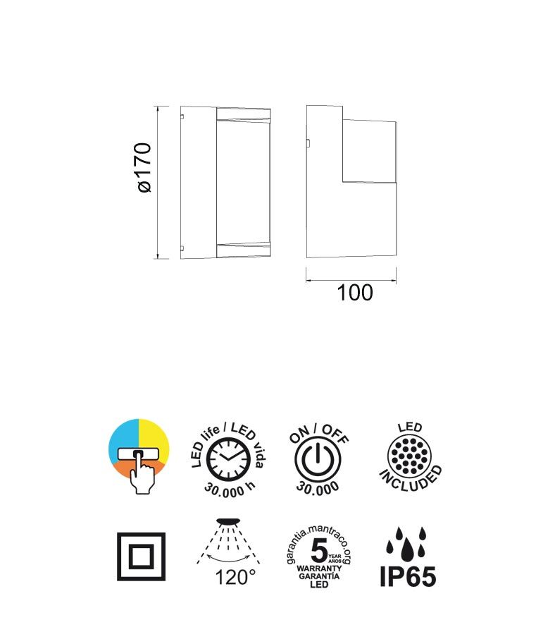 Aplique modelo Creek LED. Apertura de la luz 120º. Acabado en color blanco. Fabricada en PP y PC. Voltaje 220-240V y fuente de luz LED 15W luz CCT para 2700K-3300K-4000K 1200Lm (incluida). El CCT te permite poner una de las tres tonalidades de la luz, se configura antes de la instalación. 30.000 horas de uso.