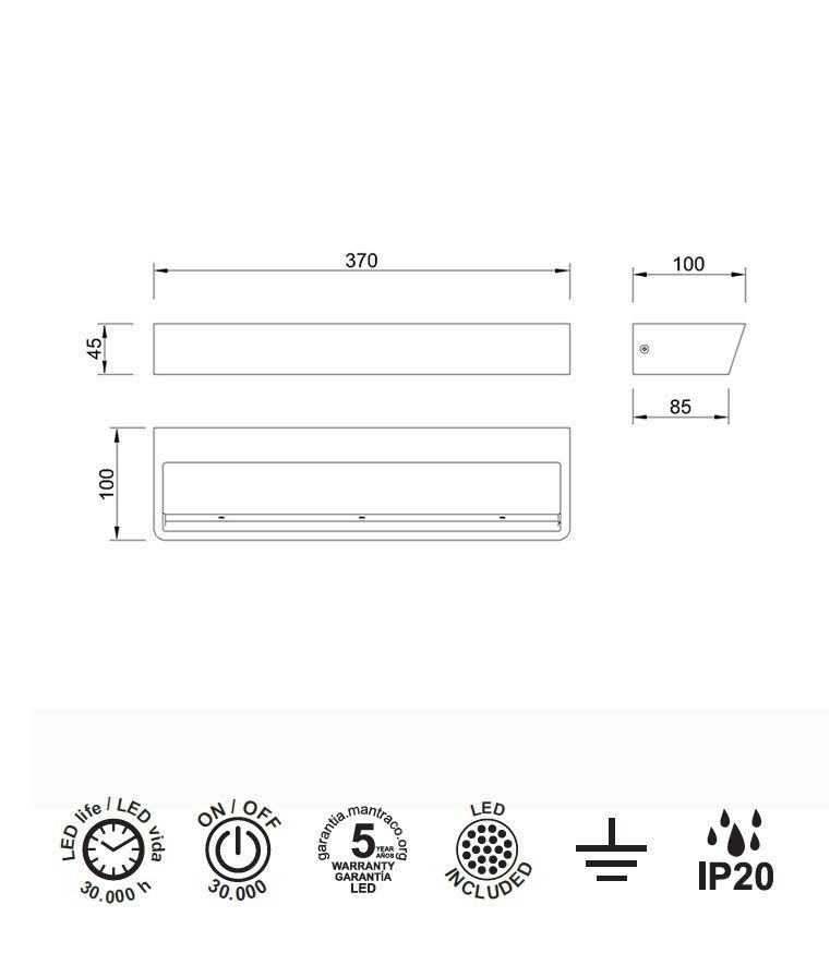 Aplique de luz indirecta como paño de luz, modelo ALTEA. Acabado en color blanco. Fabricado en aluminio y acrílico. Voltaje 220-240V y fuente de luz neutra LED de 30W 4000K 2550Lm (incl.).