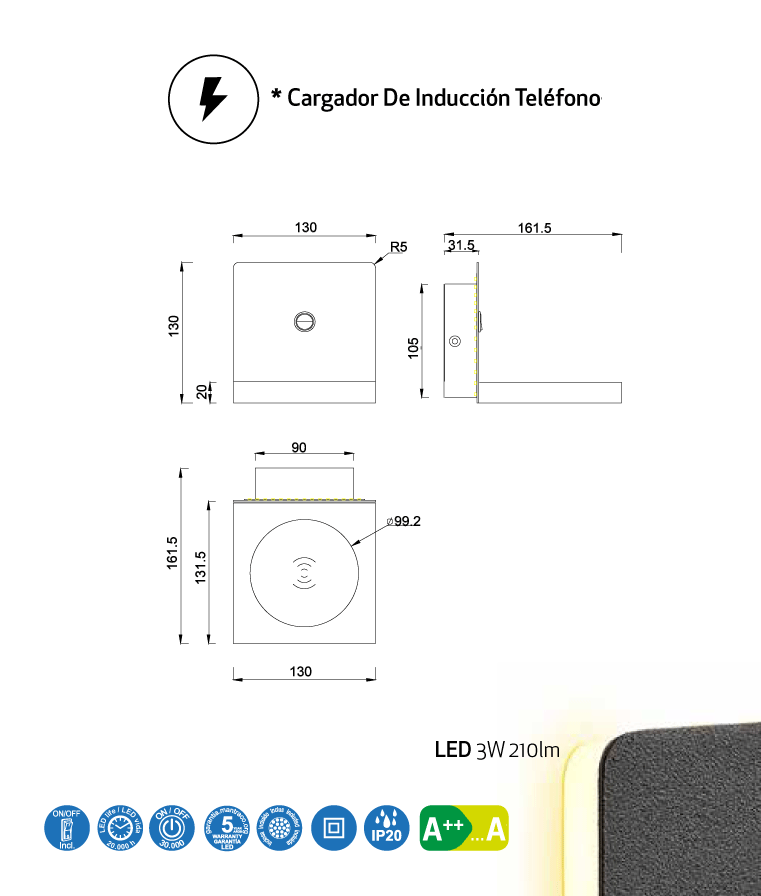 Sé el primero en valorar “Aplique blanco con cargador de inducción ZANZIBAR”