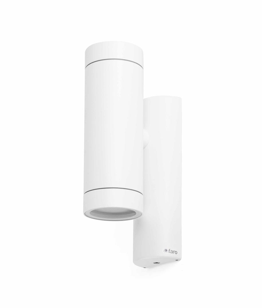 Aplique blanco exterior STEPS de la marca Faro. Lámpara de diseño moderno, ideal para la iluminación de exteriores. Fabricada en aluminio y difusor de cristal templado. Iluminación por 2 x GU10 35W (no incl.).