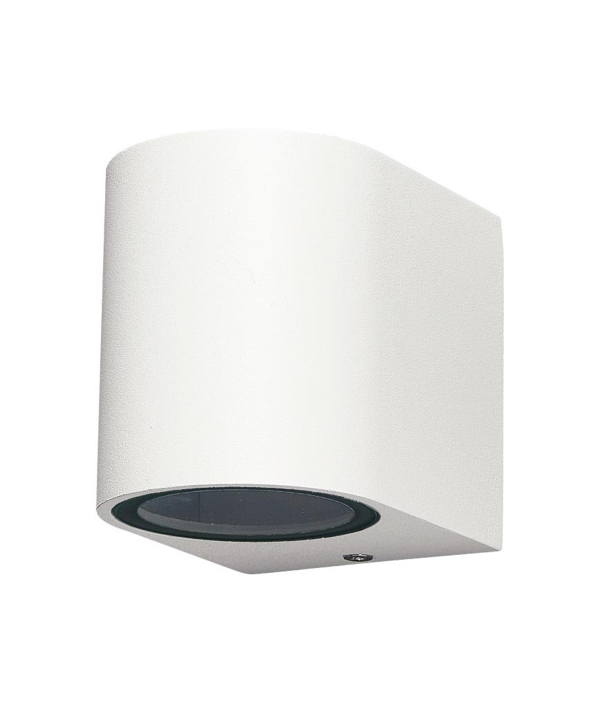 Lámpara de pared exterior modelo KANDANCHU. Iluminación decorativa y funcional ideal luminaria para el exterior del hogar con alta protección IP54. Acabado en color blanco. Diseño estilo moderno. Fabricada en aluminio y difusor de cristal. Voltaje 220-240V y fuente de luz 1 x GU10 MAX 10W (no incl.).