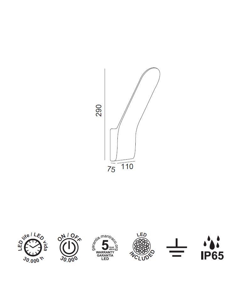 Aplique de pared exterior modelo ANDES. Acabado en color blanco. Fabricado en aluminio. Voltaje 220-240V y fuente de luz cálida LED de 6W 3000K 550Lm (incl.).