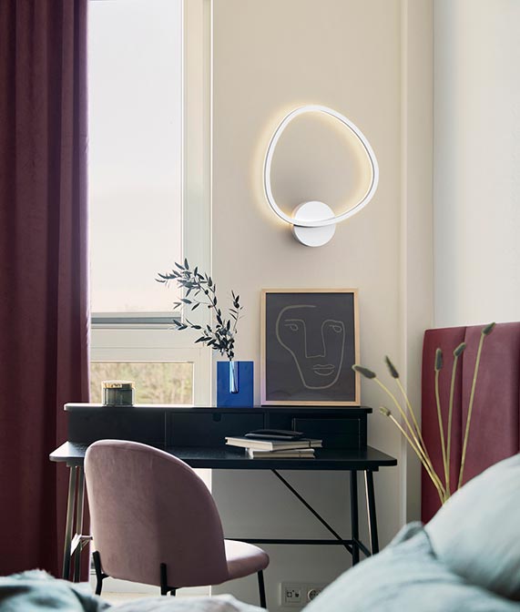 Aplique de diseño moderno modelo Opalis. Acabado en color blanco mate. Fabricada en aluminio y difusor acrílico. Voltaje 220V y fuente de luz LED 27W luz cálida 3000K 1396Lm dimable (incluida). 25.000 horas de vida media.