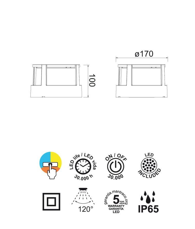 Aplique circular modelo Creek LED. Apertura de la luz 120º. Acabado en color marrón corten. Fabricada en PP y PC. Voltaje 220-240V y fuente de luz LED 15W luz CCT para 2700K-3300K-4000K 1200Lm (incluida). El CCT te permite poner una de las tres tonalidades de la luz, se configura antes de la instalación. 30.000 horas de uso.