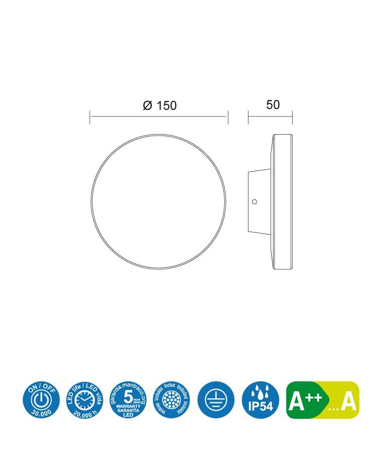 Aplique para exterior modelo BORA LED. Iluminación decorativa y funcional ideal luminaria para el exterior del hogar con alta protección IP54. Acabado en color gris oscuro. Diseño estilo moderno. Fabricada en aluminio. Voltaje 220-240V y fuente de luz cálida LED 9,6W 3000K 720 Lm (incl.).