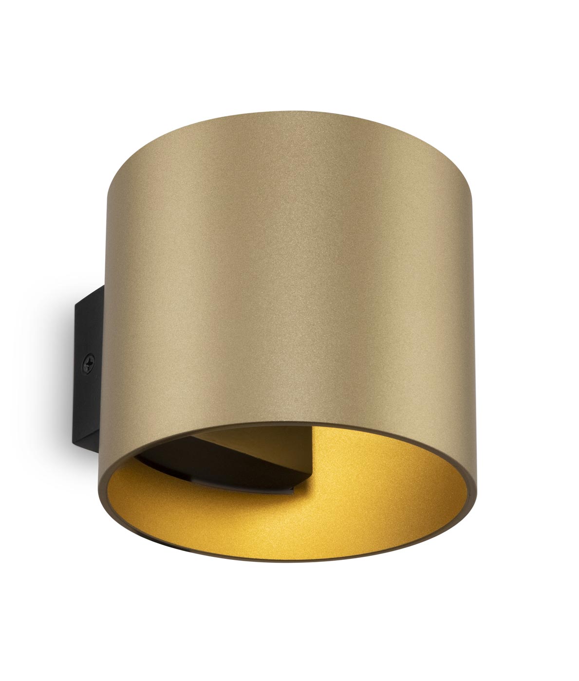 Aplique de pared moderna modelo ROND. Ideal para la iluminación decorativa. Acabado en color dorado mate. Fabricada en aluminio. Voltaje 220-240V y fuente de luz por 1 bombilla G9 MÁX 40W (no incluida). Da luz por la parte superior e inferior.