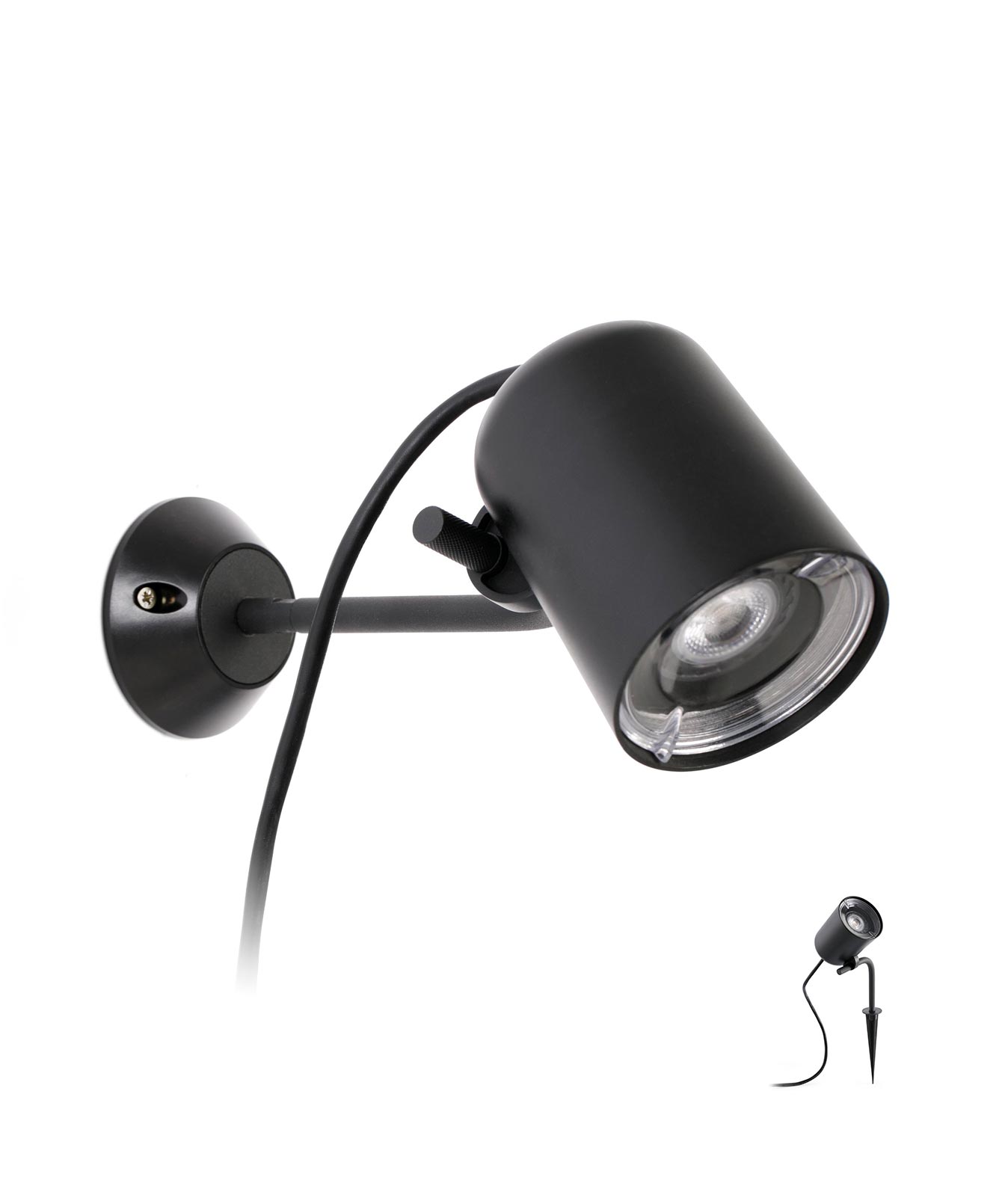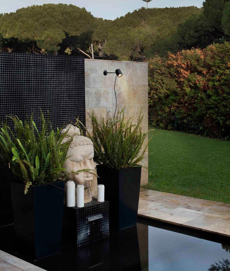 Aplique con estaca incluida negro FLOW. Diseño con líneas modernas, ideal para la iluminación exterior decorativa del jardín. Fabricada en policarbonato, metal y difusor PMMA. Alta protección IP44 contra la humedad. Iluminación por 1 x GU10 MAX 8W (no incl.).
