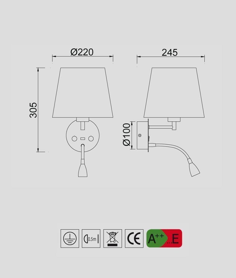 Aplique con lector LED con USB acabado color cuero CAICOS