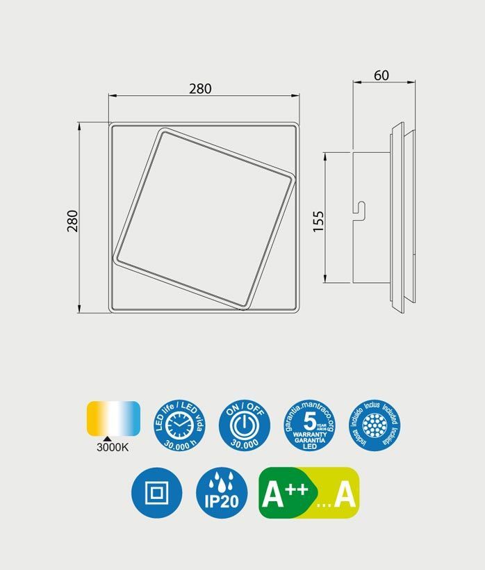 Aplique de pared estilo moderno y minimalista, modelo DAKLA LED. Acabado en negro. Fabricada en metal. Voltaje 220-240V y fuente de luz cálida LED de 18W 3000K 1090Lm (incluida).