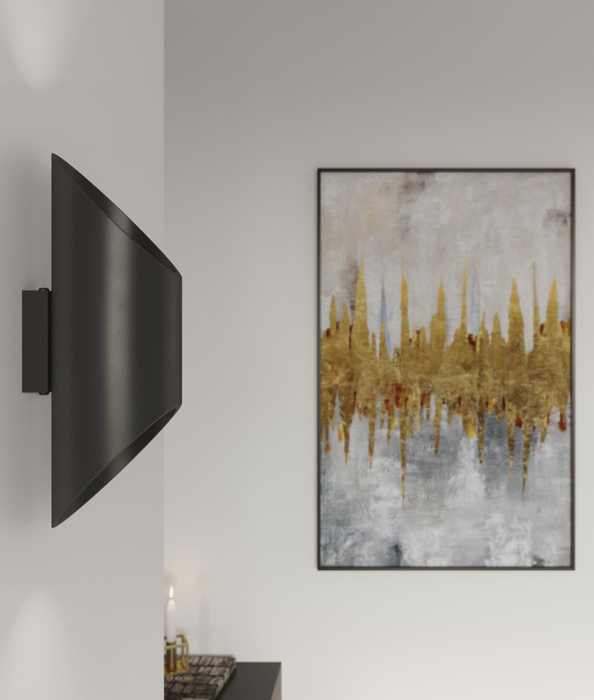 Aplique minimalista modelo PENNE 30. Ideal para la iluminación decorativa del hogar. Acabado en color negro. Fabricada en aluminio. Voltaje 220V y fuente de luz por 1 bombilla G9 MÁX 40W (no incluida).