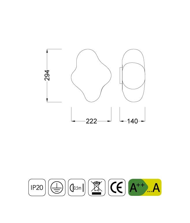 Aplique EOS con difusor de polietileno. Iluminación mediante LED 3W incluida. Posibilidad de instalación tanto en interior como en exterior (IP44).
