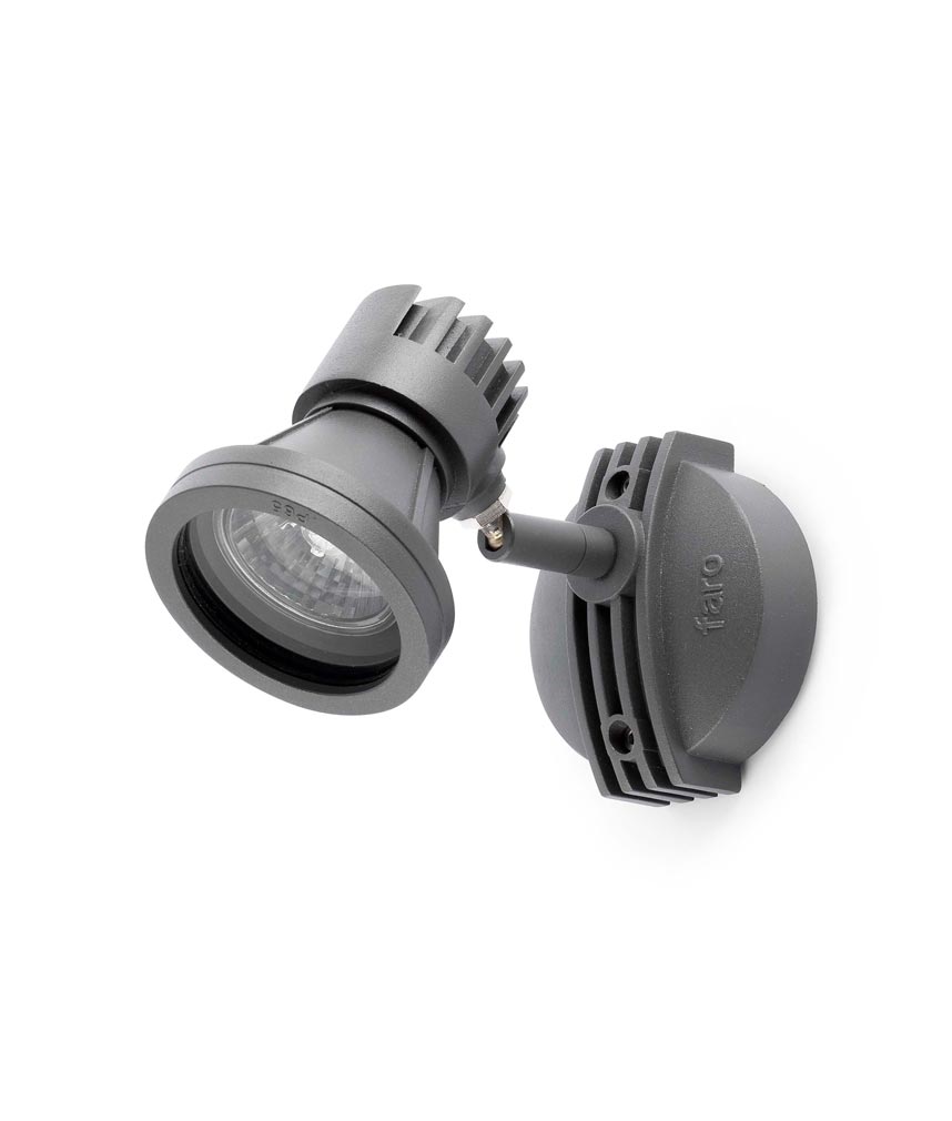 Aplique exterior gris MINIPROJECT de la marca Faro. Diseño de estilo moderno, ideal para iluminar jardines y terrazas. Fabricada en aluminio inyectado y difusor de cristal transparente. Iluminación por 1 x GU10 50W (no incl.).