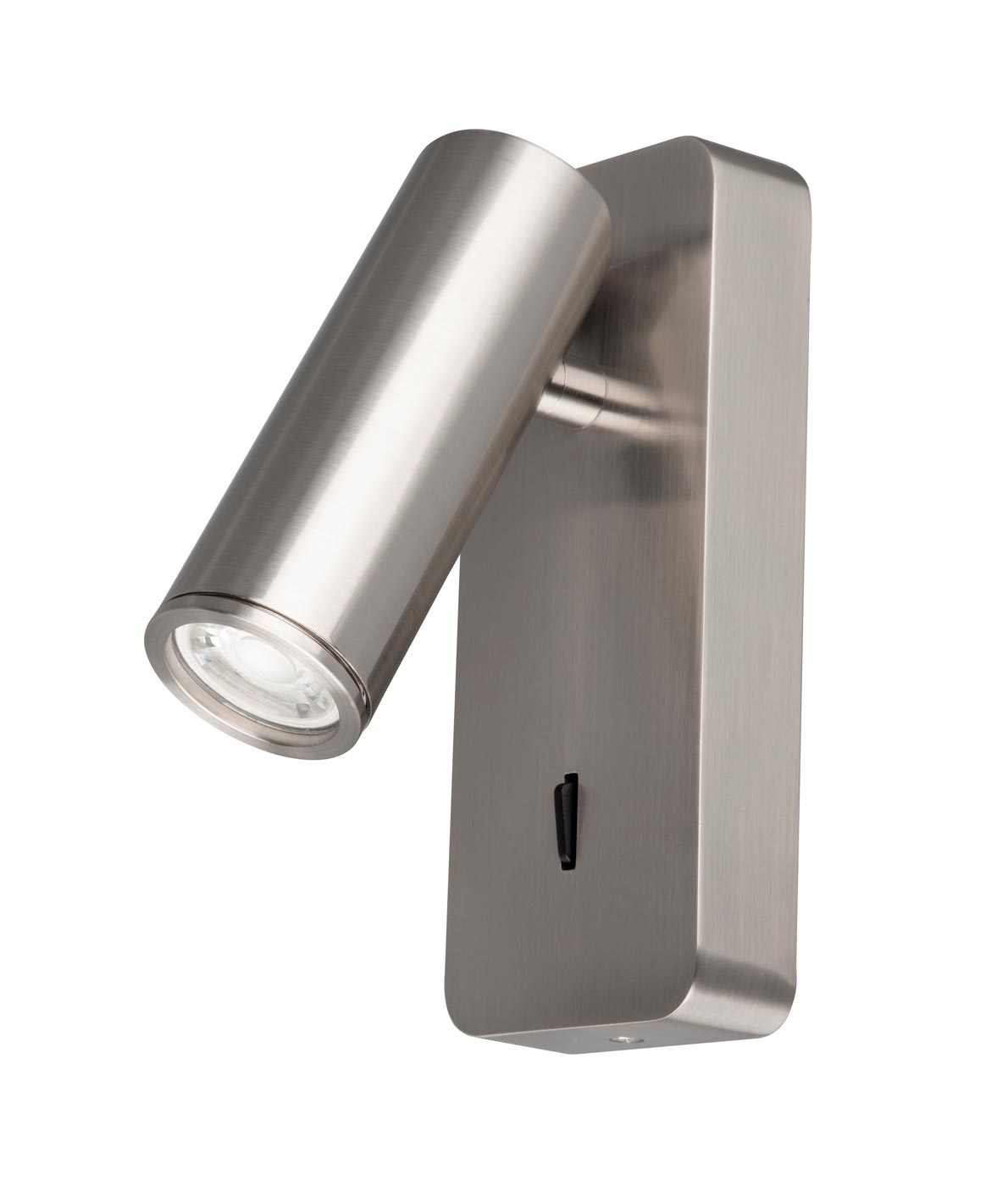 Aplique lector con interruptor incluido modelo Notte. Acabado en color níquel. Fabricada en aluminio. Voltaje 100-240V y fuente de luz por 1 bombilla GU10 MINI máx. 4W LED (no incluida).