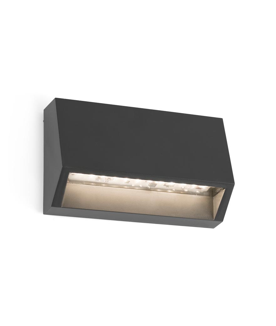 Aplique LED para exterior MUST-1 de la marca Faro. Diseño estilo moderno, ideal para la iluminación decorativa de jardines y terrazas. Color gris oscuro. Fabricada en ABS y difusor de policarbonato transparente. Iluminación por SMD LED 2W 3000K (incl.). Transformador driver incluido.