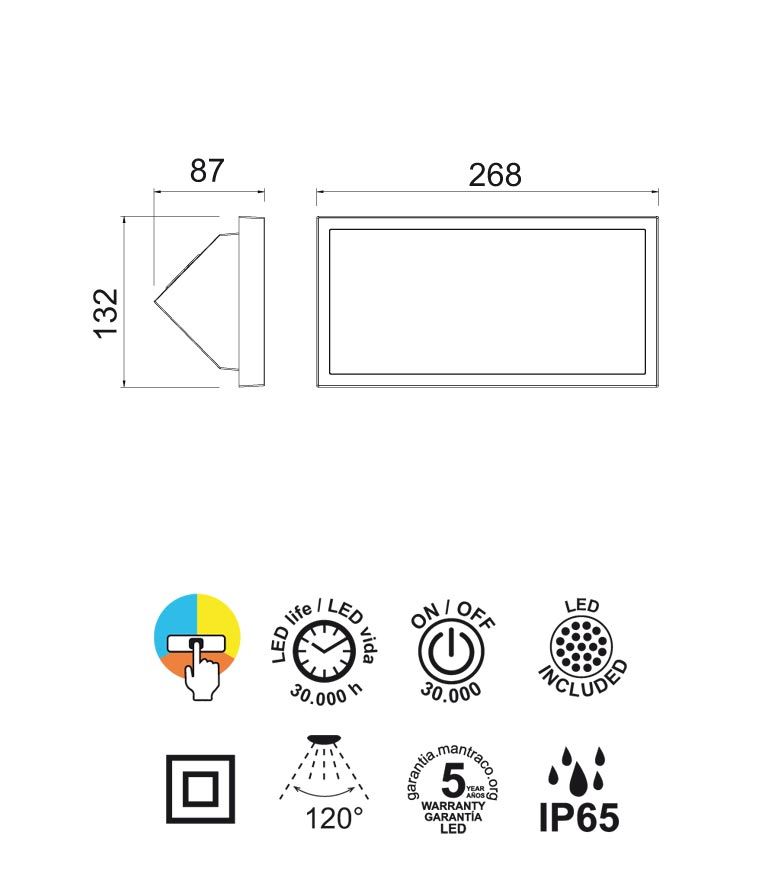 Aplique rectangular modelo Creek LED. Apertura de la luz 120º. Acabado en color negro. Fabricada en PP y PC. Voltaje 220-240V y fuente de luz LED 20W luz CCT para 2700K-3300K-4000K 1600Lm (incluida). El CCT te permite poner una de las tres tonalidades de la luz, se configura antes de la instalación. 30.000 horas de uso.