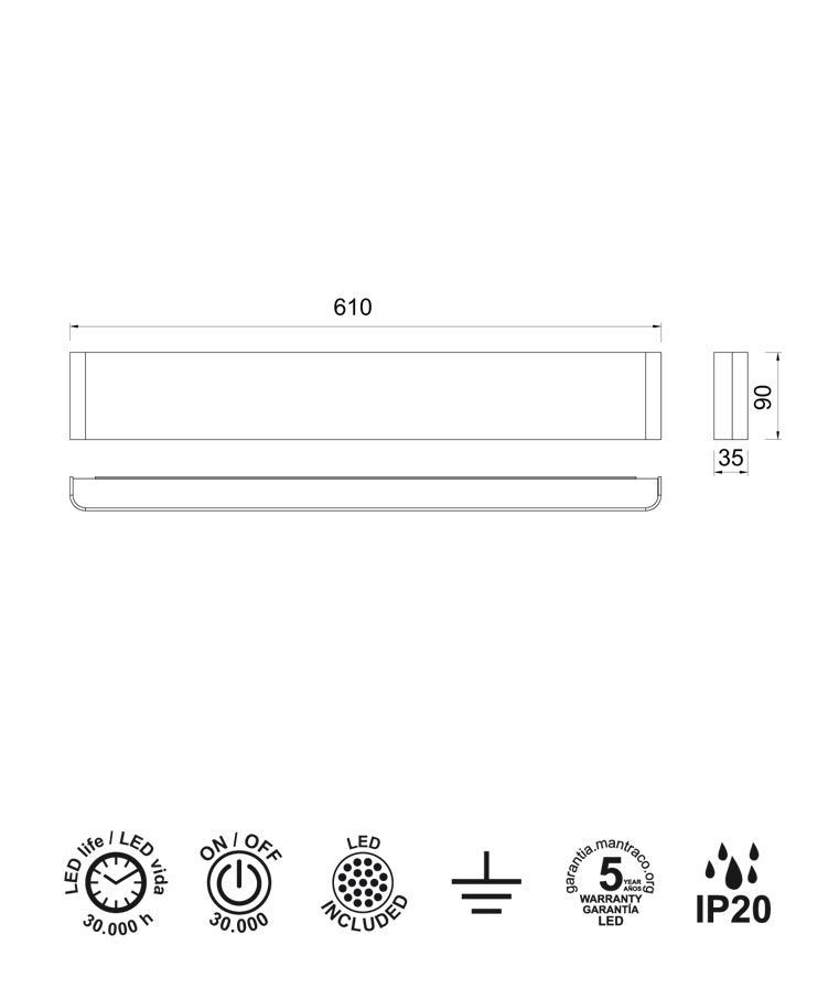Lámpara aplique minimalista modelo Egeo LED. Acabado en color negro. Fabricada en aluminio. Voltaje 220-240V y fuente de luz LED 20W luz cálida 3000K 1600Lm (incluida). 30.000 horas de uso.