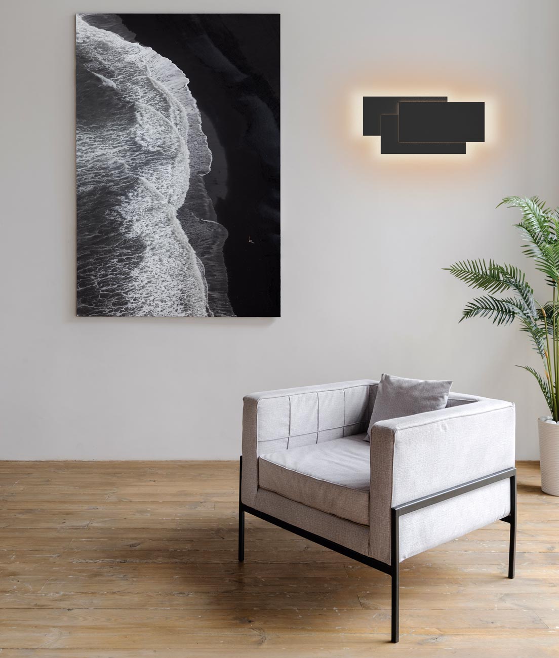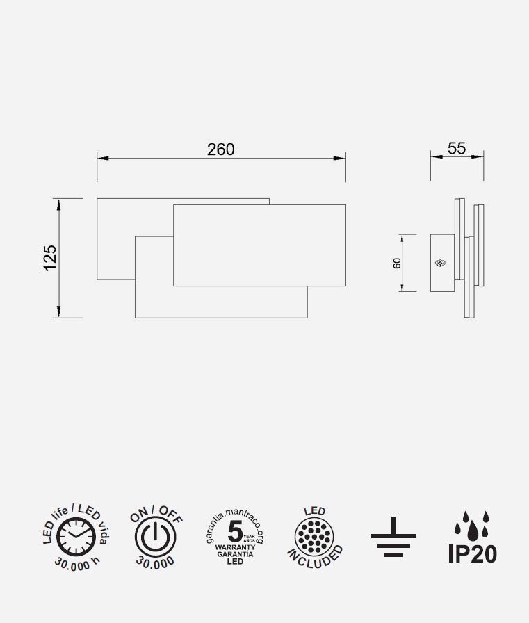 Aplique de pared modelo TAHITI XL. Acabado en color negro. Fabricado en aluminio y acrílico. Voltaje 220-240V y fuente de luz cálida LED de 12W 3000K 1080Lm (incl.).