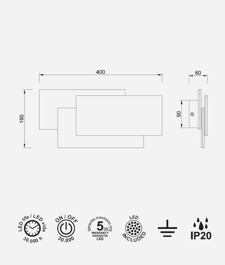 Aplique de pared modelo TAHITI XL. Acabado en color negro. Fabricado en aluminio y acrílico. Voltaje 220-240V y fuente de luz cálida LED de 36W 3000K 3240Lm (incl.).