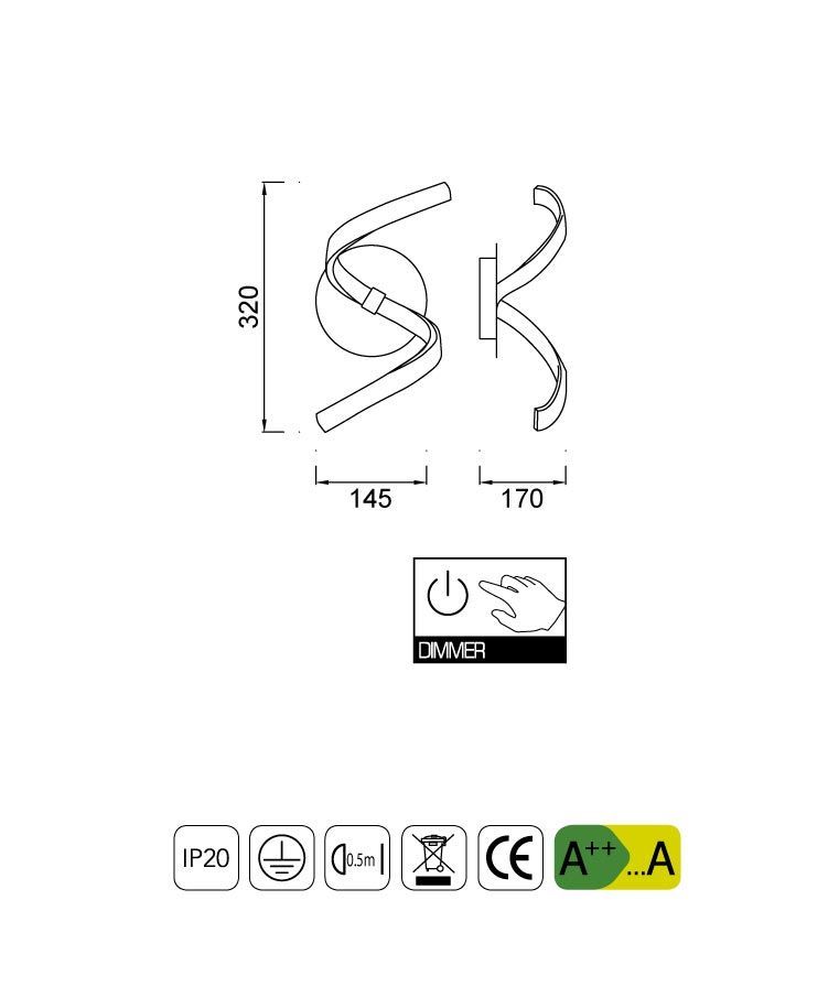 Aplique NUR con acabado en cromo y plata y difusor acrílico. Iluminación mediante LED 10W incluida.