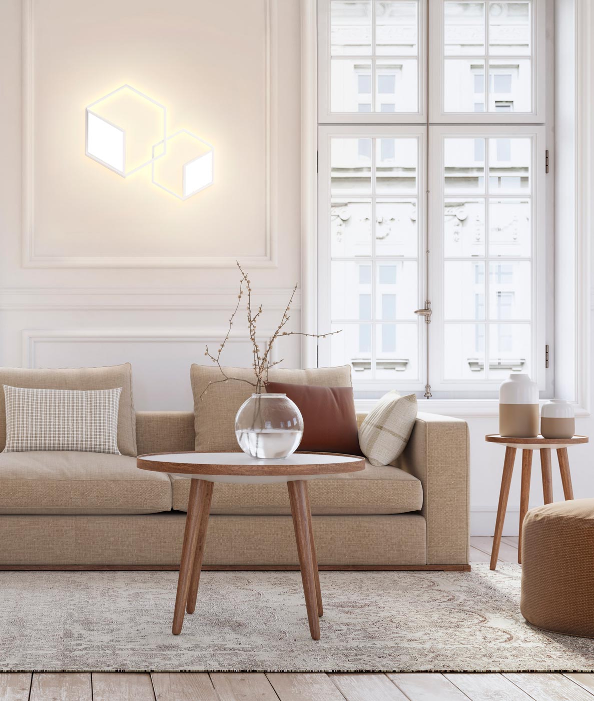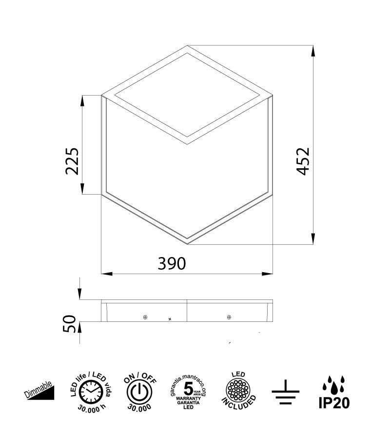 Lámpara regulable en intensidad (dimable) que se puede usar de aplique o plafón, modelo KUBICK LED. Ideal para la iluminación decorativa. Acabado en color blanco. Fabricada en aluminio. Voltaje 220-240V y fuente de luz cálida regulable LED de 33,5W 3000K 1870Lm (incluida).