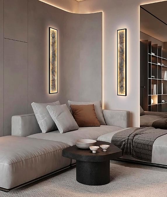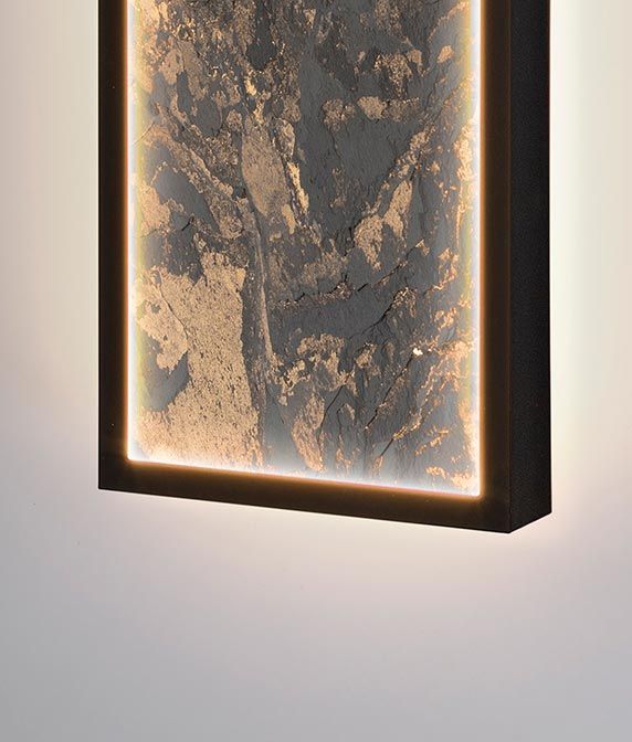 Lámpara aplique o plafón modelo Stone. Acabado en color negro. Fabricada en metal y pizarra sintética. Voltaje 220-240V y fuente de luz LED 80W cambio color luz 3000-4000-6000K 1288Lm (incluida). 25.000 horas de vida media. La selección de temperatura de color CCT se realiza desde el interruptor de pared (no incluido) con sucesivas pulsaciones. Incluye función memoria.