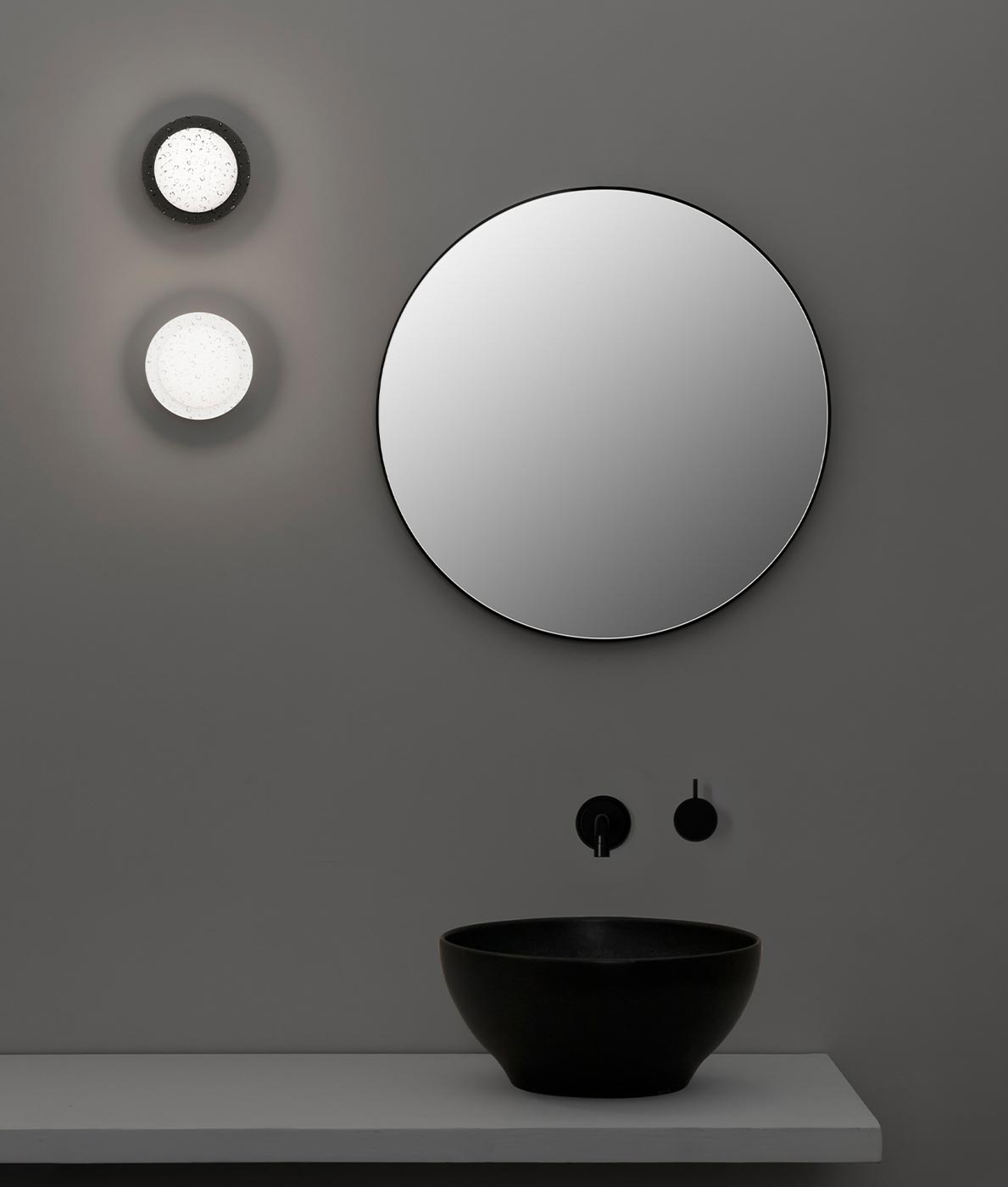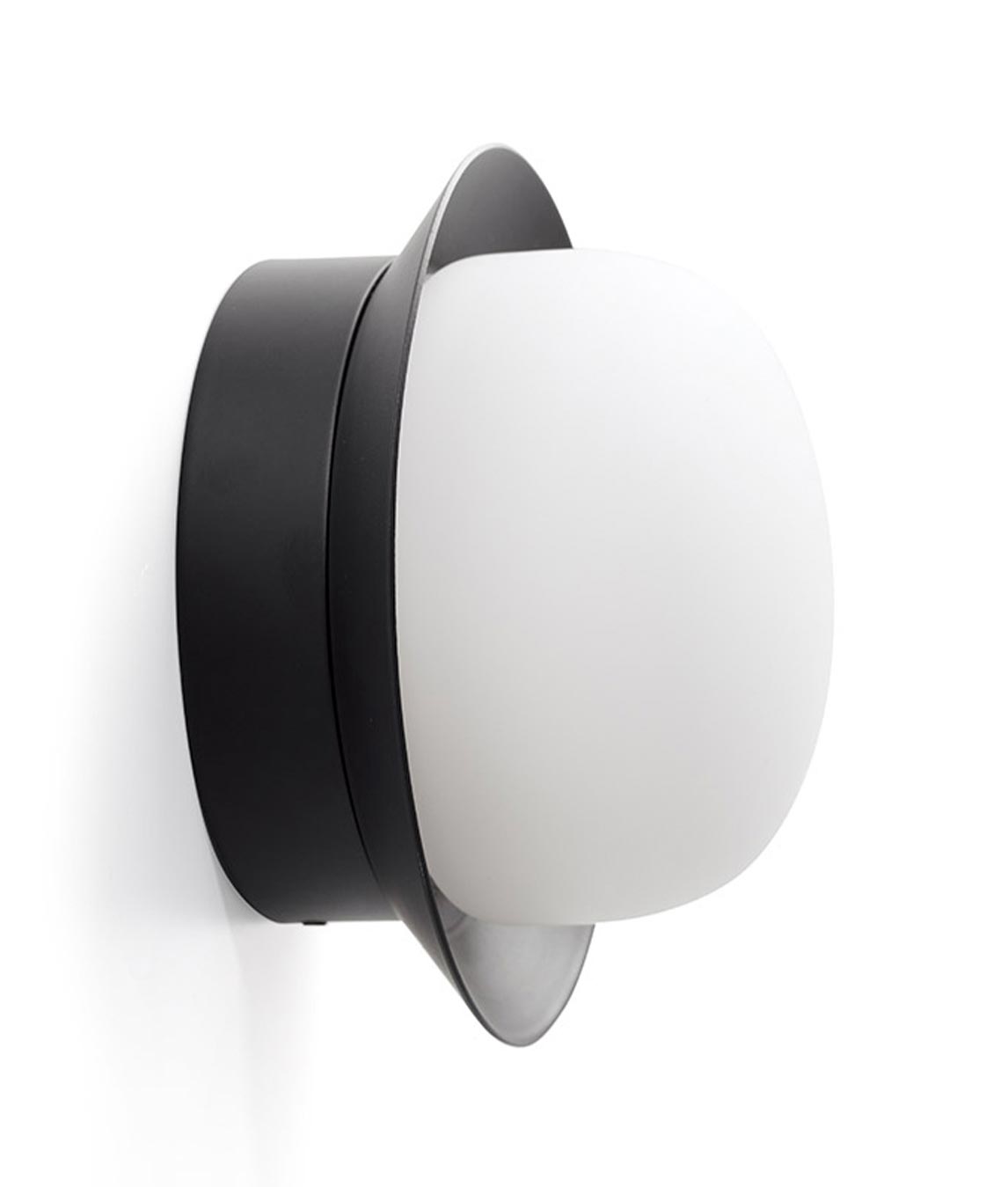 Lámpara aplique de diseño original, modelo MAY LED. Ideal para la iluminación del baño como aplique o plafón. Alta protección IP44. Acabado en color negro. Fabricada en acero y cristal. Voltaje 100-240V y fuente de luz LED 4W luz cálida 2700K 300Lm (incluida).