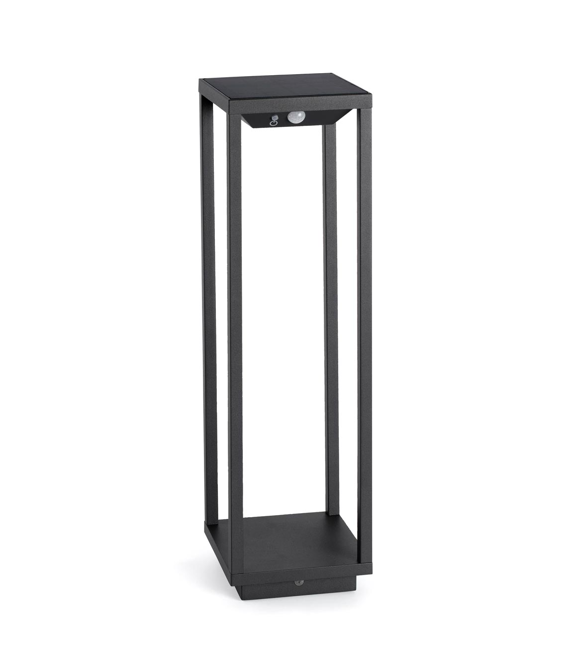 Baliza solar gris oscura SAURA LED. Diseño con líneas modernas, ideal para la iluminación decorativa de las zonas de paso del jardín y zonas de paso o entrada de la vivienda. Sensor PIT que detecta el movimiento y regula la intensidad de luz si nota presencia alrededor de personas. Se enciende y apaga pulsando un botón durante 3 segundos. Carga durante el día. Fabricada en aluminio. Alta protección IP54 contra la humedad. Baliza con sensor y panel solar (incl.).