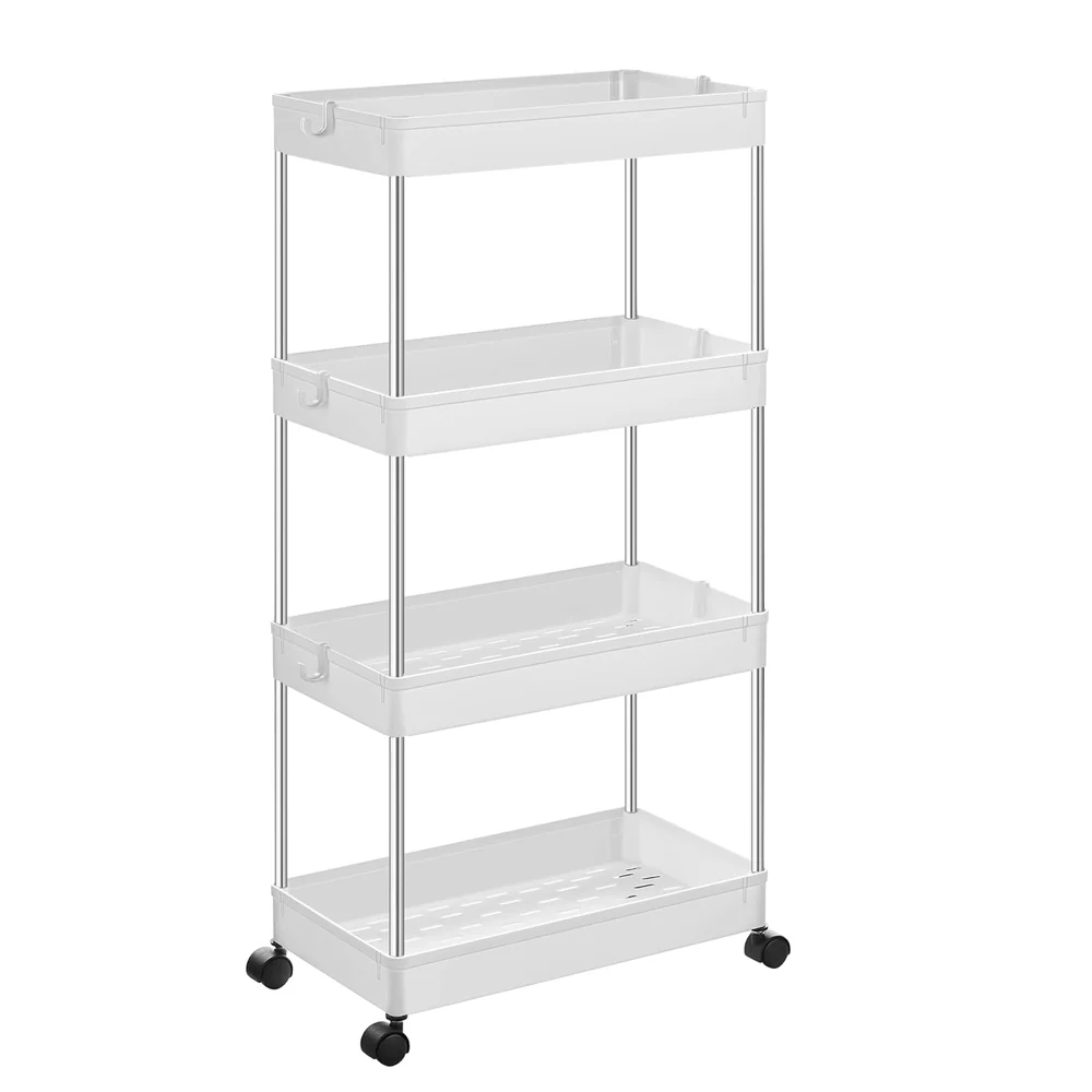 - Fácil de instalar: el organizador de estantería está hecho de plástico, duradero y estable. Montaje rápido y fácil, fácil de cuidar. Este carrito de almacenamiento de cocina de 4 niveles se instalará en poco tiempo con instrucciones claras, piezas individuales etiquetadas y sin necesidad de herramientas.