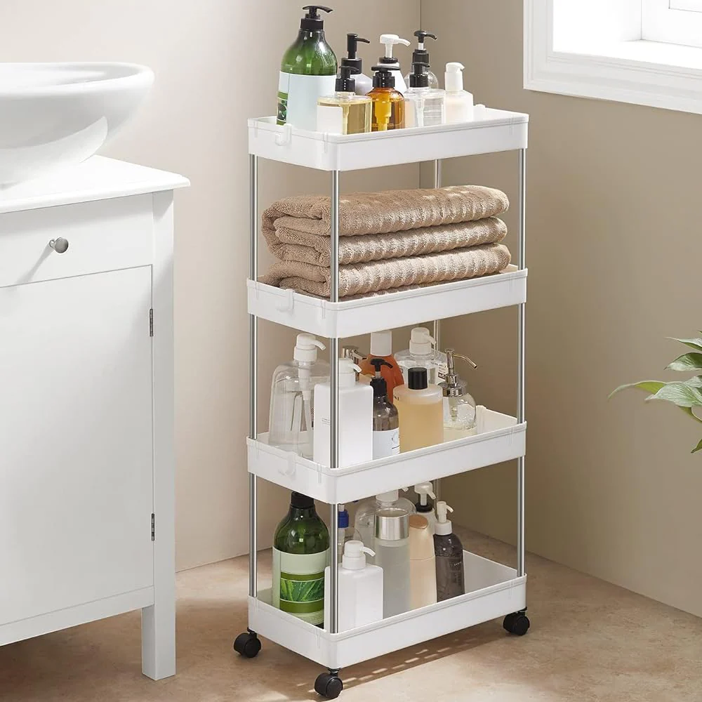- Carrito de almacenamiento flexible de 4 niveles: el carrito de almacenamiento delgado de 4 niveles tiene un diseño de 40×21.5×86.5cm que se puede utilizar en espacios reducidos de tu hogar para almacenamiento. Adecuado para armarios, cocinas, baños, garajes, lavanderías, oficinas o entre tu lavadora y secadora.