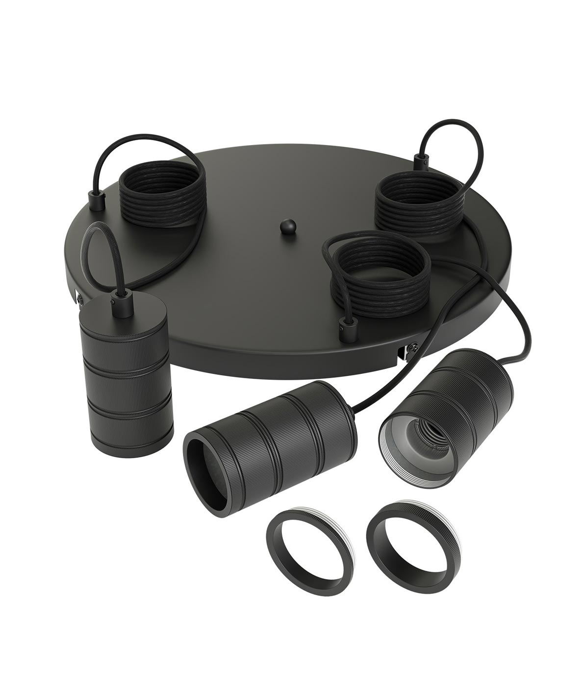 Lámpara de techo con tres puntos de luz con cable de 200 cm. Casquillo E27. Modelo MULTI PORT-LAMP de Calex. Acabado en negro, estilo industrial. Luz apta para 3 bombillas E27 (no incluida).