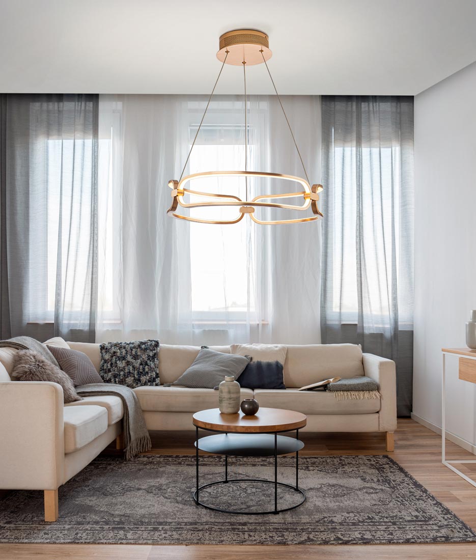Lámpara de techo con tecnología LED, estilo moderno, modelo COLETTE. Ideal para la iluminación decorativa del hogar. Acabado en oro rosa. Fabricada en aluminio y silicona. Voltaje 110-240V y fuente de luz cálida LED 37W 3000K 3330Lm (incluida).