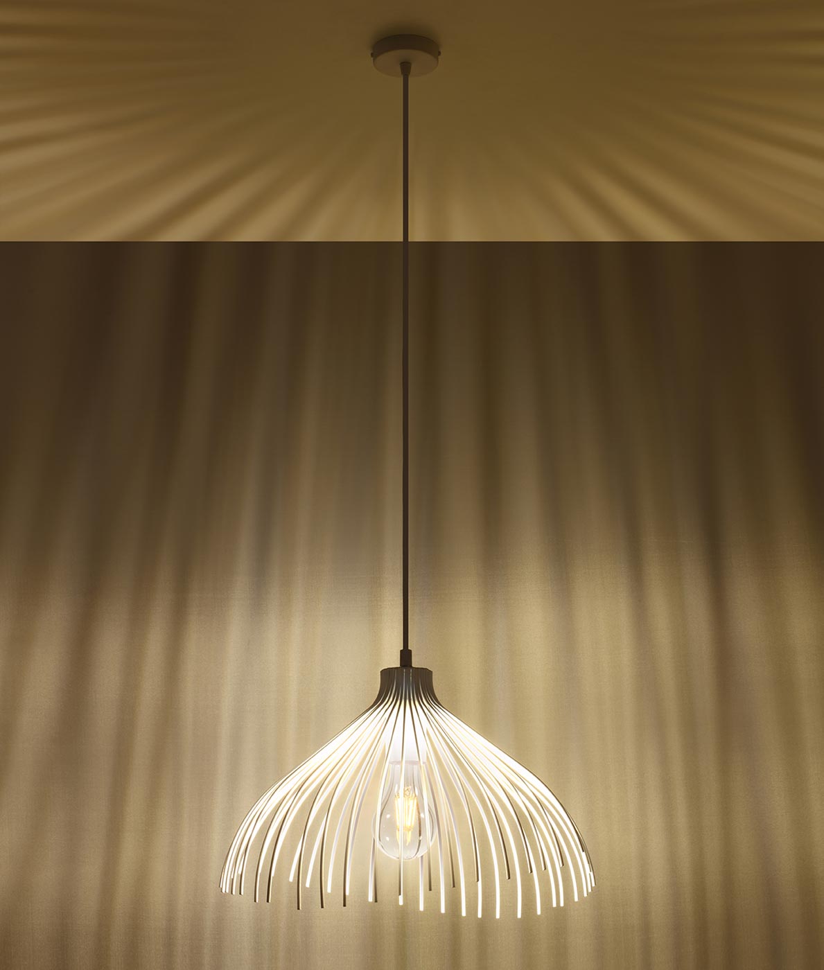 Lámpara de techo de diseño moderno, modelo UMB. Ideal para la iluminación decorativa del hogar. Acabado en color blanco. Fabricada en acero. Voltaje 220V y fuente de luz por 1 bombilla E27 MÁX 60W (no incluida).