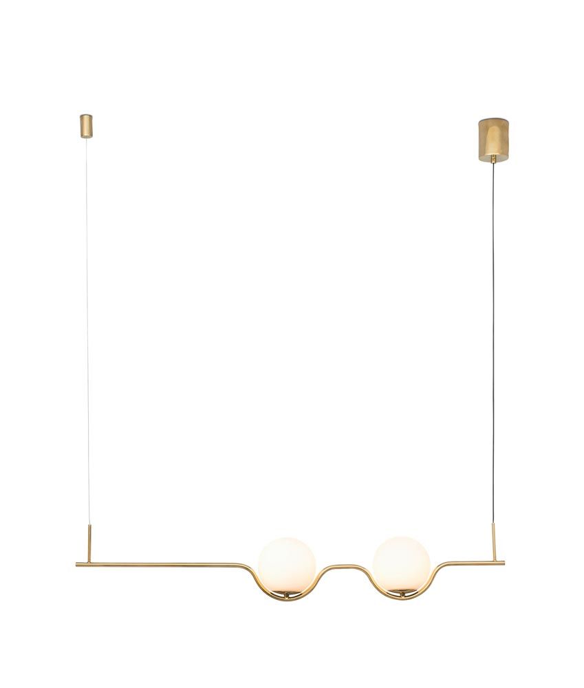 Original lámpara colgante lineal de 2 luces con un diseño de líneas delicadas y sencillas modelo LE VITA. Ideal para la iluminación decorativa del hogar. Acabado en color oro. Diseño elegante. Fabricada en aluminio y difusor de cristal. Voltaje 100-240V y fuente de luz cálida 2 x LED 6W 2700K 1200Lms (incl.).