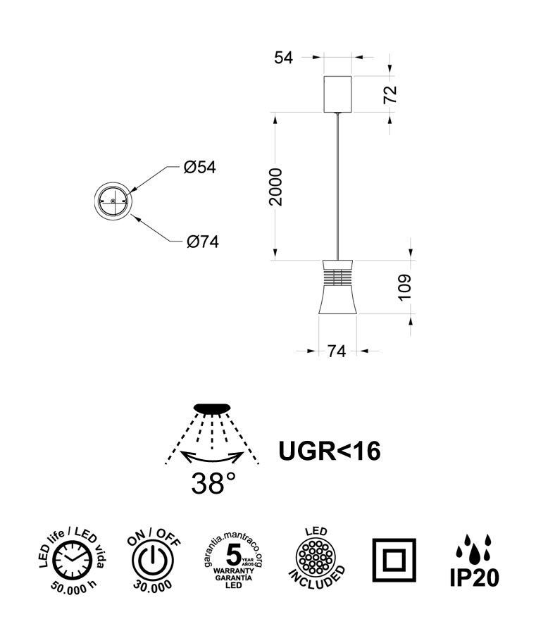 Lámpara colgante modelo PAGODA LED. Ideal para la iluminación decorativa del hogar. Apertura de la luz 38 grados. Acabado en color negro. Fabricada en aluminio. Voltaje 220-240V y fuente de luz neutra LED 12,5W 4000K 1050Lm (incluida).