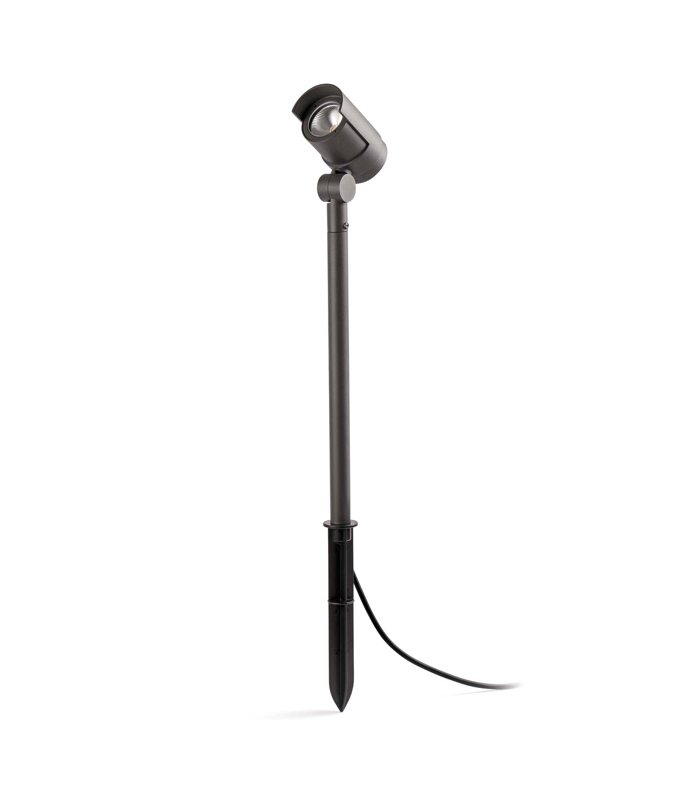Estaca foco proyector gris oscuro FOC-52 LED. Diseño con líneas modernas, ideal para la iluminación exterior decorativa del jardín y terraza. Fabricada en aluminio y difusor de cristal opal. Alta protección IP65 contra la lluvia y cuerpos sólidos. Iluminación cálida por LED 15W 3000K 800Lm (incl.).
