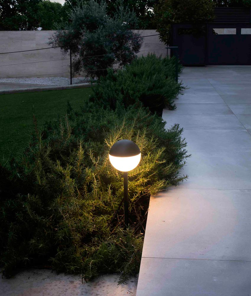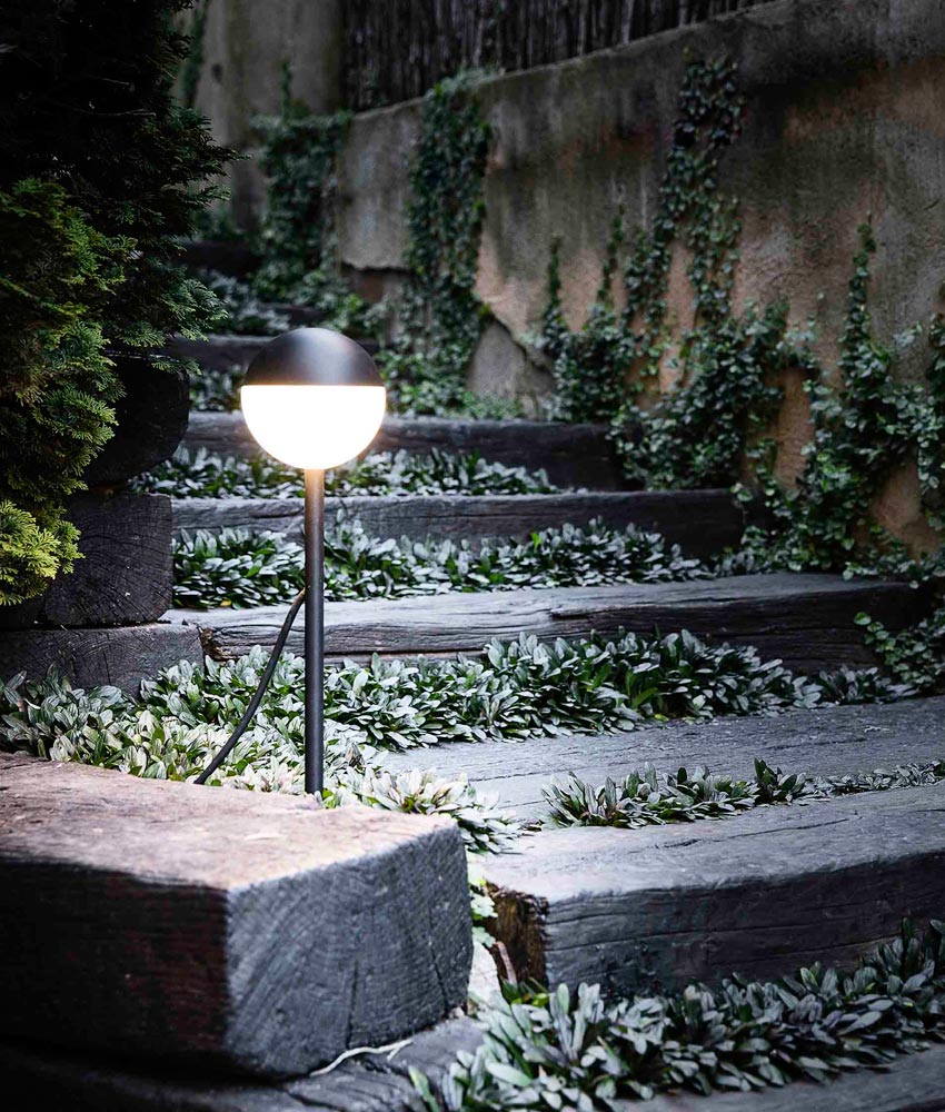 Estaca para exterior con tecnología LED, modelo PICCOLA. Ideal luminaria para resaltar plantas, árboles y objetos del jardín o terraza. Lámpara con alta protección IP65 que lo protege contra la lluvia y los cuerpos sólidos. Acabado en color negro. Diseño estilo moderno. Fabricada en metal y difusor PMMA opal. Voltaje 100-240V y fuente de luz cálida SMD LED 6W 2700K 360Lms (incl.). Volver a sección, pulsando aquí.