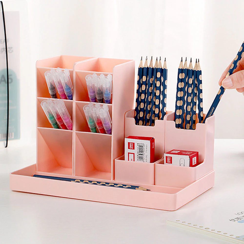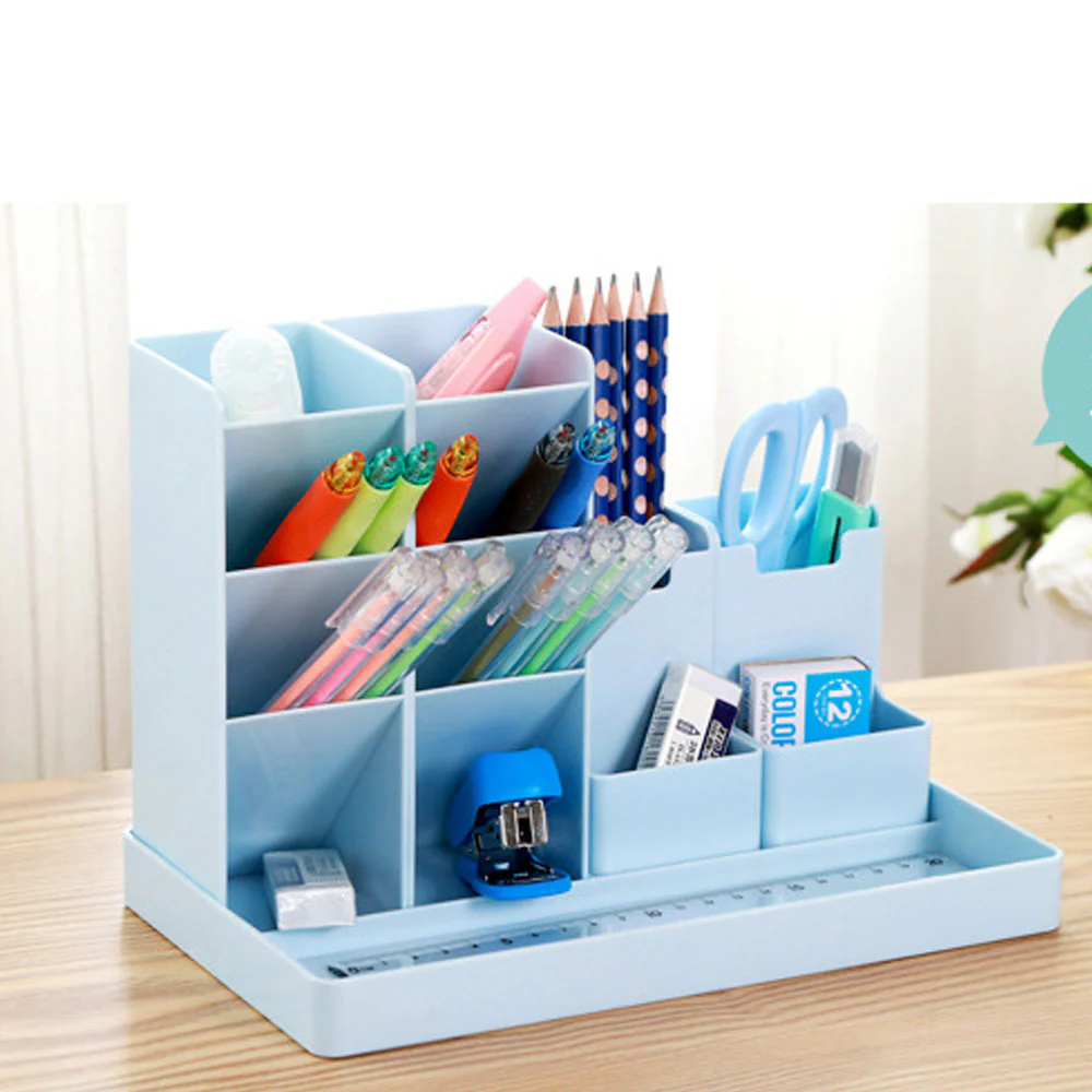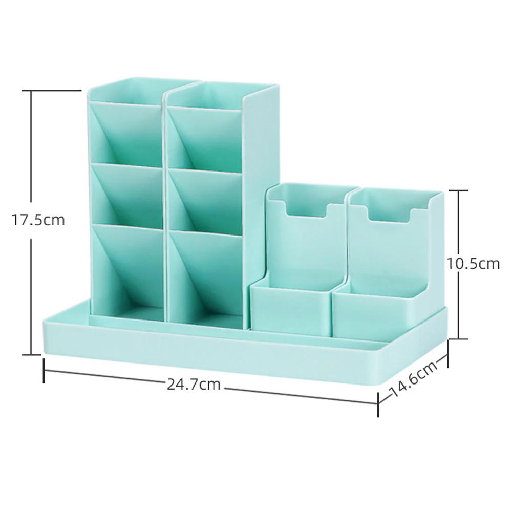 Este organizador de escritorio está diseñado con compartimentos con diferentes dimensiones para que incluyas los artículos indispensables en la oficina y hogar, mantén todo al alcance de tu mano Organiza tus útiles de forma eficaz y ahorra tiempo considerable con el sistema de almacenamiento de Estante Organizador de Artículos de Papelería y Suministros de Casa.