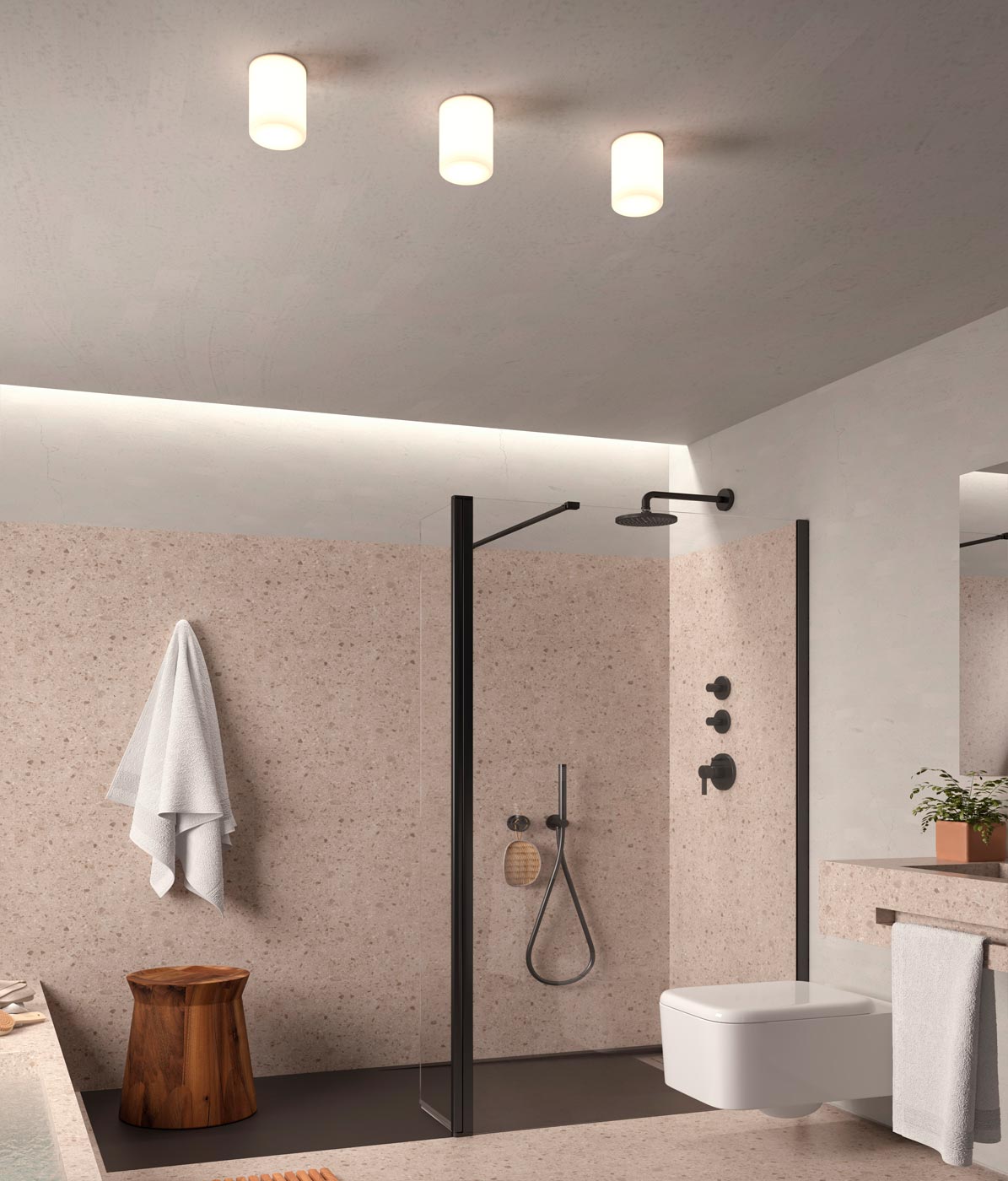 Lámpara foco de superficie de diseño protección IP44, modelo GLACIAR LED. Ideal para la iluminación decorativa del baño. Acabado en color blanco. Fabricada en acrílico. Voltaje 220-240V y fuente de luz neutra LED 9W 4000K 700LM (incluida).