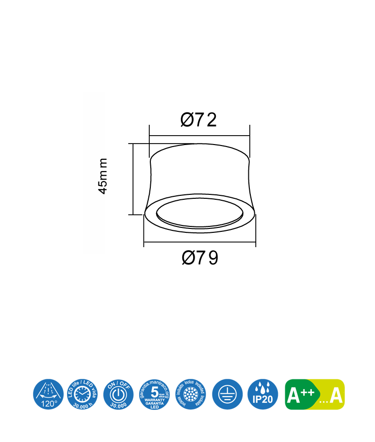 Plafón foco modelo GOWER. Acabado en color negro arena. Fabricada en aluminio. Voltaje 220-240V y fuente de luz LED 7W 4000K luz neutra 560 Lm (incl.).
