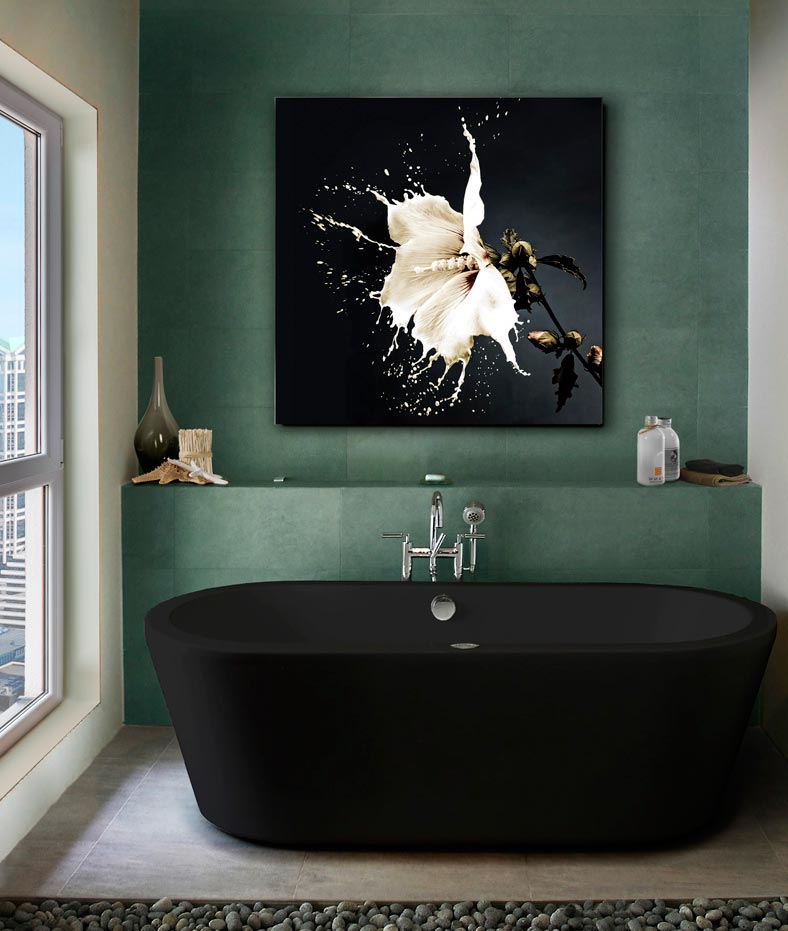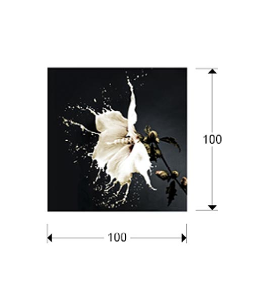 Fotografía impresa, montada en cristal templado, modelo SPLASH. Incluye herraje para sujeción a pared.