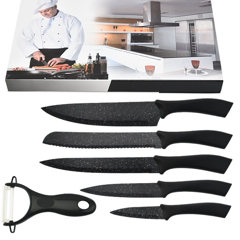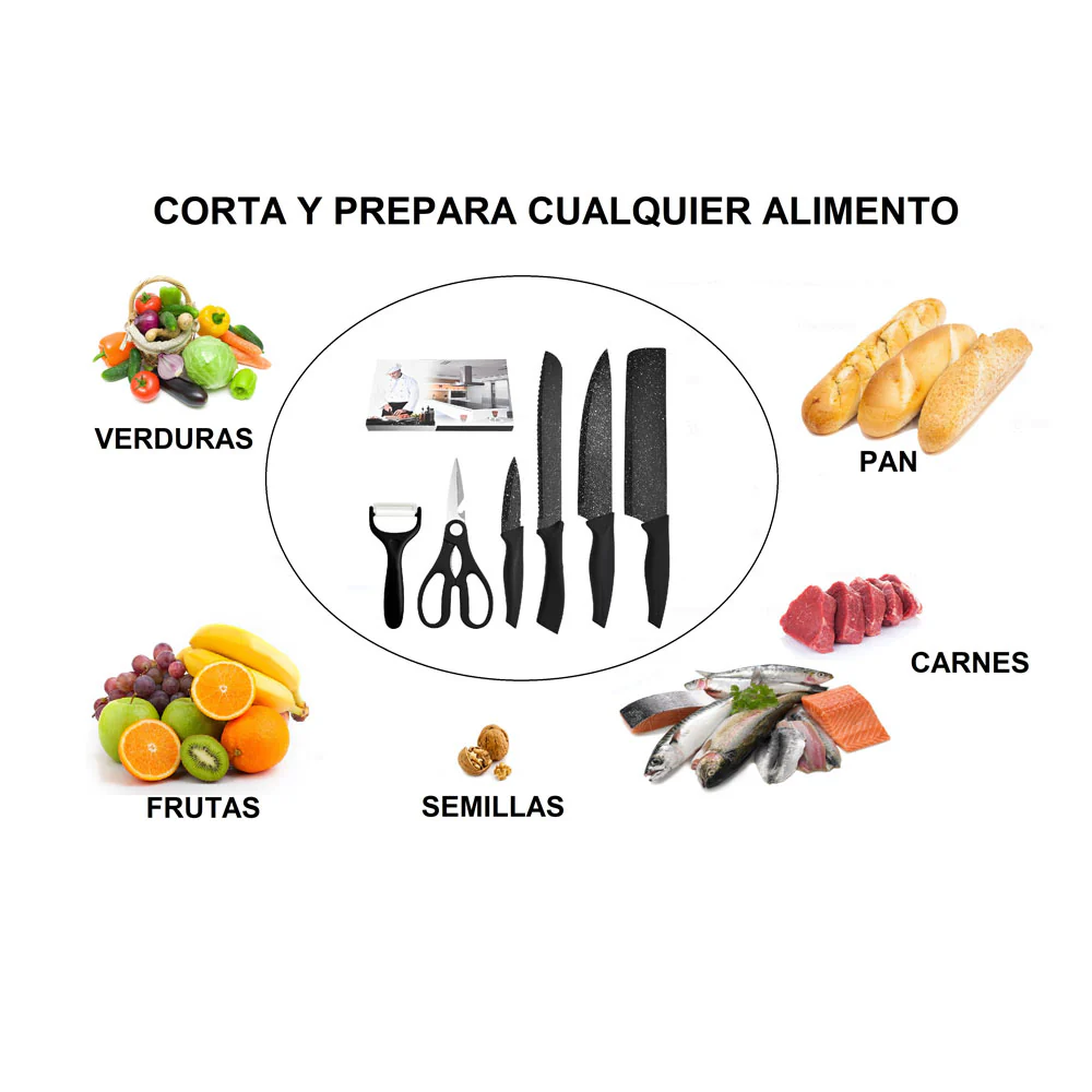 Juego De Cuchillos Profesional Acero Inoxidable Negros 6 Pzs