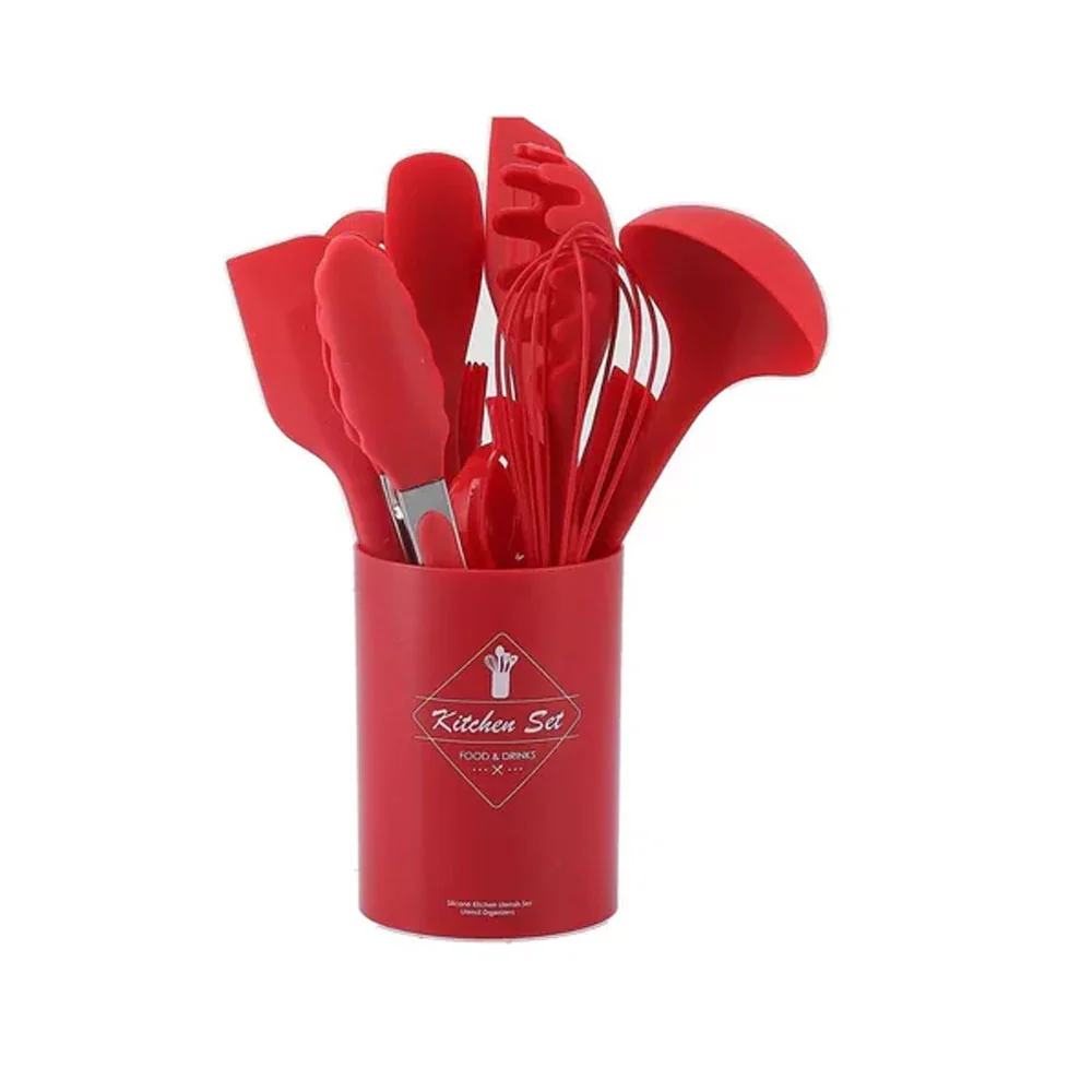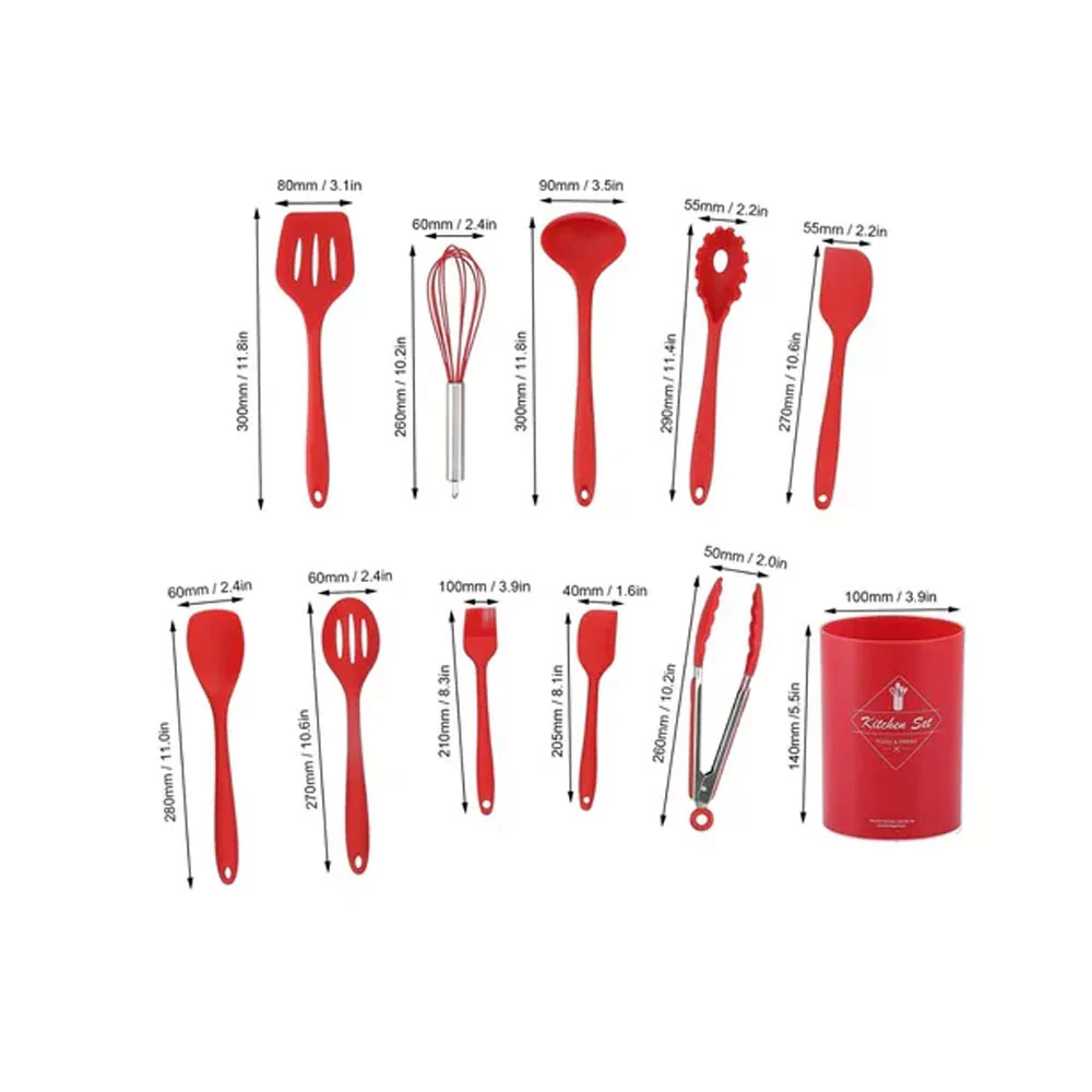 - Tamaño compacto que ahorra espacio en la cocina: Juego de utensilios de cocina con 11 piezas incluye contenedor de almacenamiento resistentes al calor, antiadherentes, sin BPA, mango de alta calidad, espátula, cuchara, pinzas, batidor, juego de utensilios de cocina (negro y rojo)