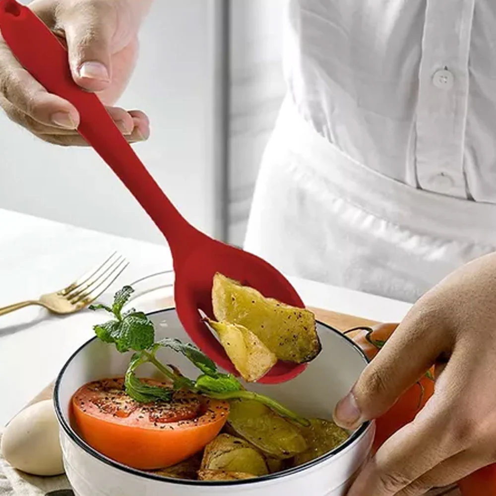 - Protege tus ollas y sartenes: Cucharas de silicona antiadherente que evita que tus sartenes se rayen o se abollen. Cuenta con un recubrimiento que protege perfectamente la olla antiadherente para hacer que los usuarios coman con más tranquilidad.